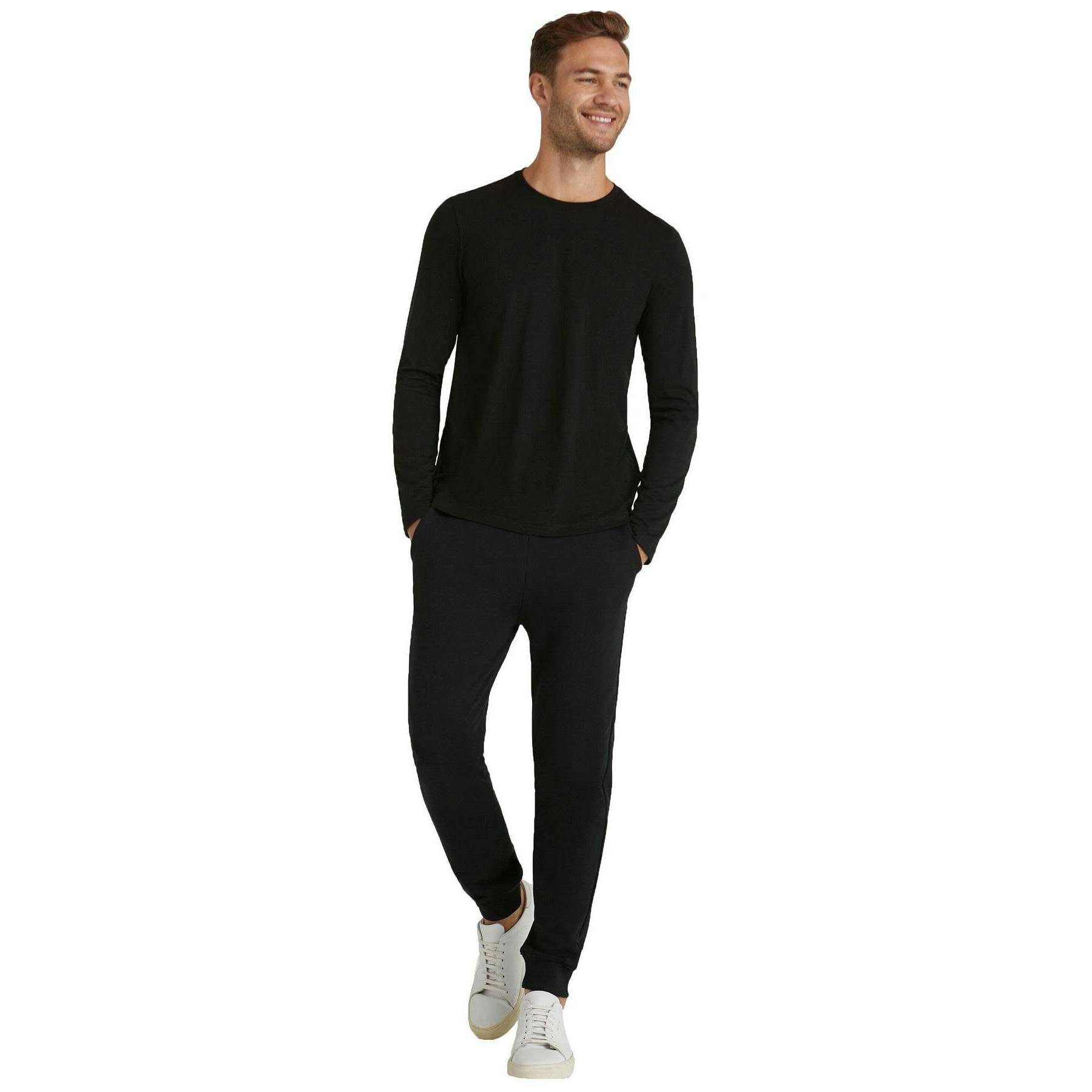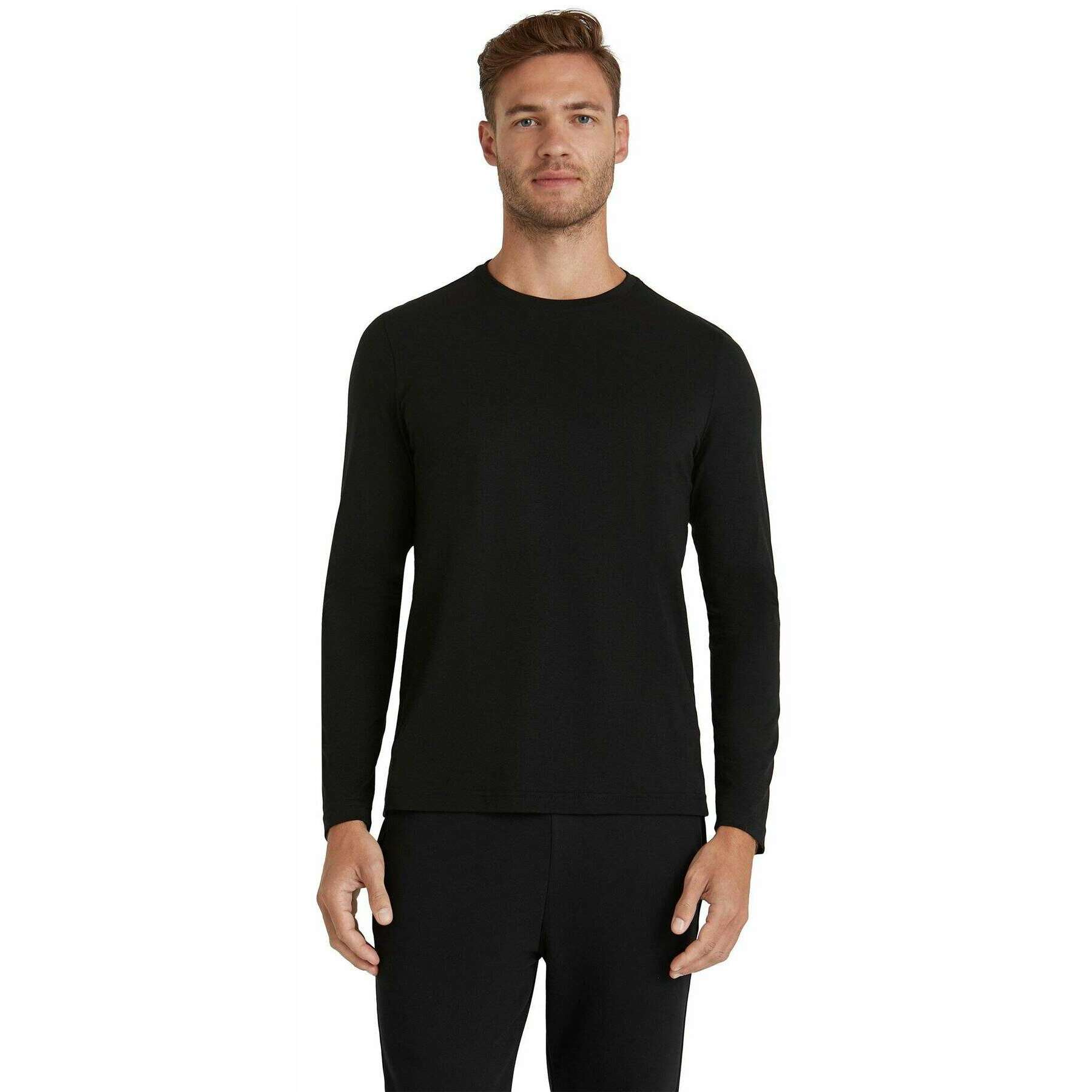 Falke Pima Jersey Crew Neck Long Sleeve T-Shirt - Black