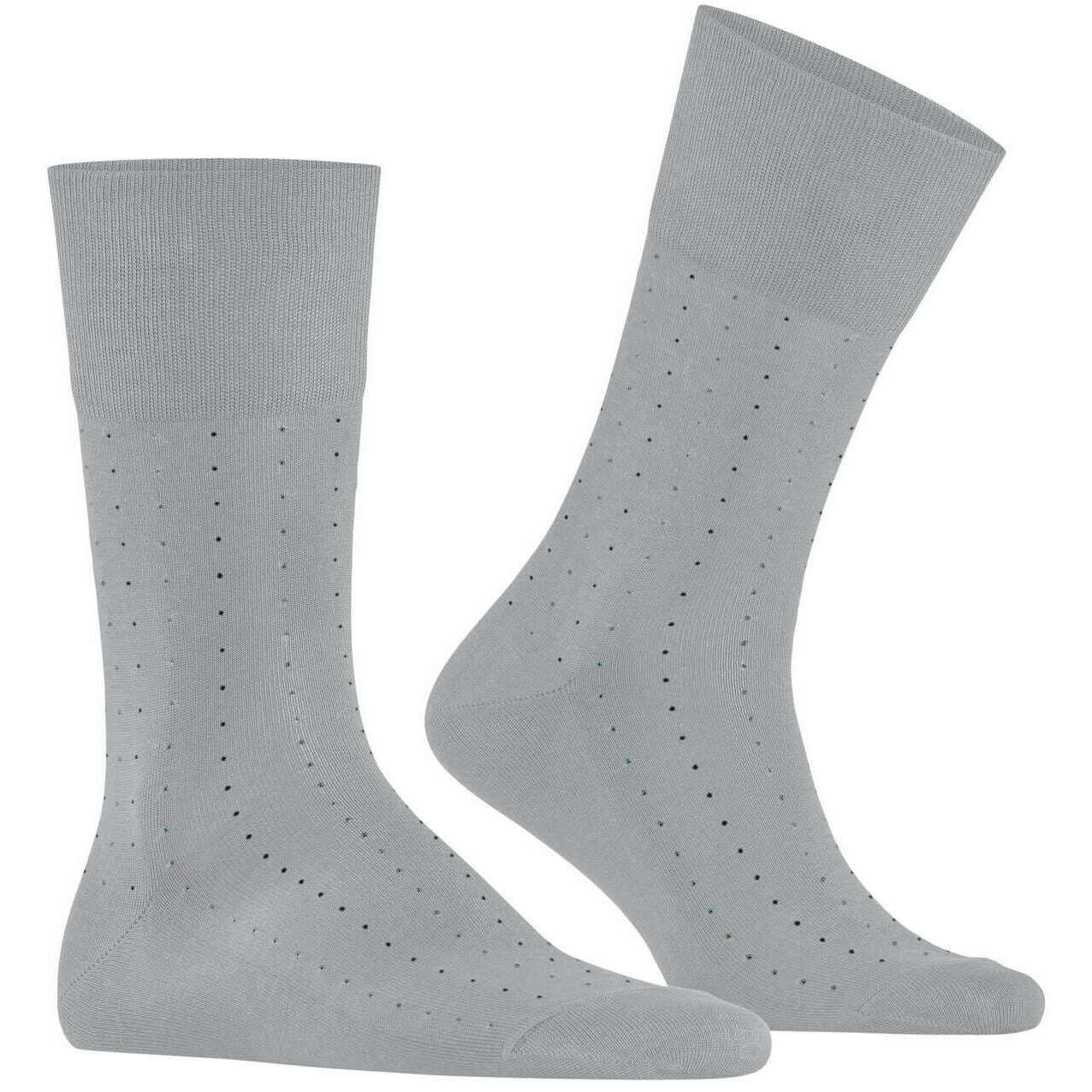 Perfect for men are these Falke silver grey tiago dotted line socks, they are also made from 93% cotton, 5% polyamide and 2% elastane. Also the silver grey socks are designed in a pin dot pattern, It is recommended to wash at 30 degrees to keep these socks in good condition. All the socks come complete with falke tags. The Falke Tiago Dotted Line Socks - Silver Grey are ideal for active men! Business or leisure these socks offer a two-tone dot design for a stylish look. Lightweight thanks to the high-quality Fil d' cosse cotton, you feel comfortable all day. The extended cuff ensures a wrinkle-free fit on the leg, while reinforced stress zones guarantee high durability. The unique colour brilliance and iconic appearance allow you to combine these socks with any outfit. With the Falke Perfect Fit, these socks make an excellent gift idea.