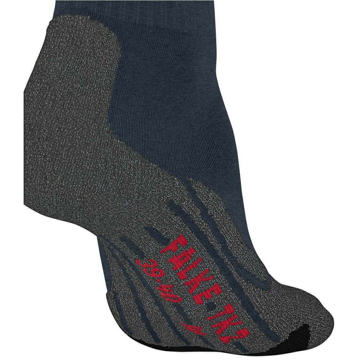 These women's tk2 explore trekking socks by the brand Falke are made from 40% polypropylene, 28% acrylic, 22% wool, 9% polyamide and 1% elastane and are showcased in red. Also the burgundy socks are designed in a block pattern, It is recommended to wash at 30 degrees to keep these socks in good condition. All the socks come complete with falke socks tags. The Falke TK2 Explore Trekking Socks - Burgundy feature a thermoregulating Merino wool mix with odour resistant qualities that allow you to wear for longer periods outdoors. With the mountain silhouette incorporated into the shaft, these socks give an attractive look. Providing compression zones to increase stability and reduce the risk of sprains, these TK2 Crest socks are designed with moisture wicking 3-layer construction to keep your feet dry and blister free. Optimal fit and specifically adapted to narrower feet.