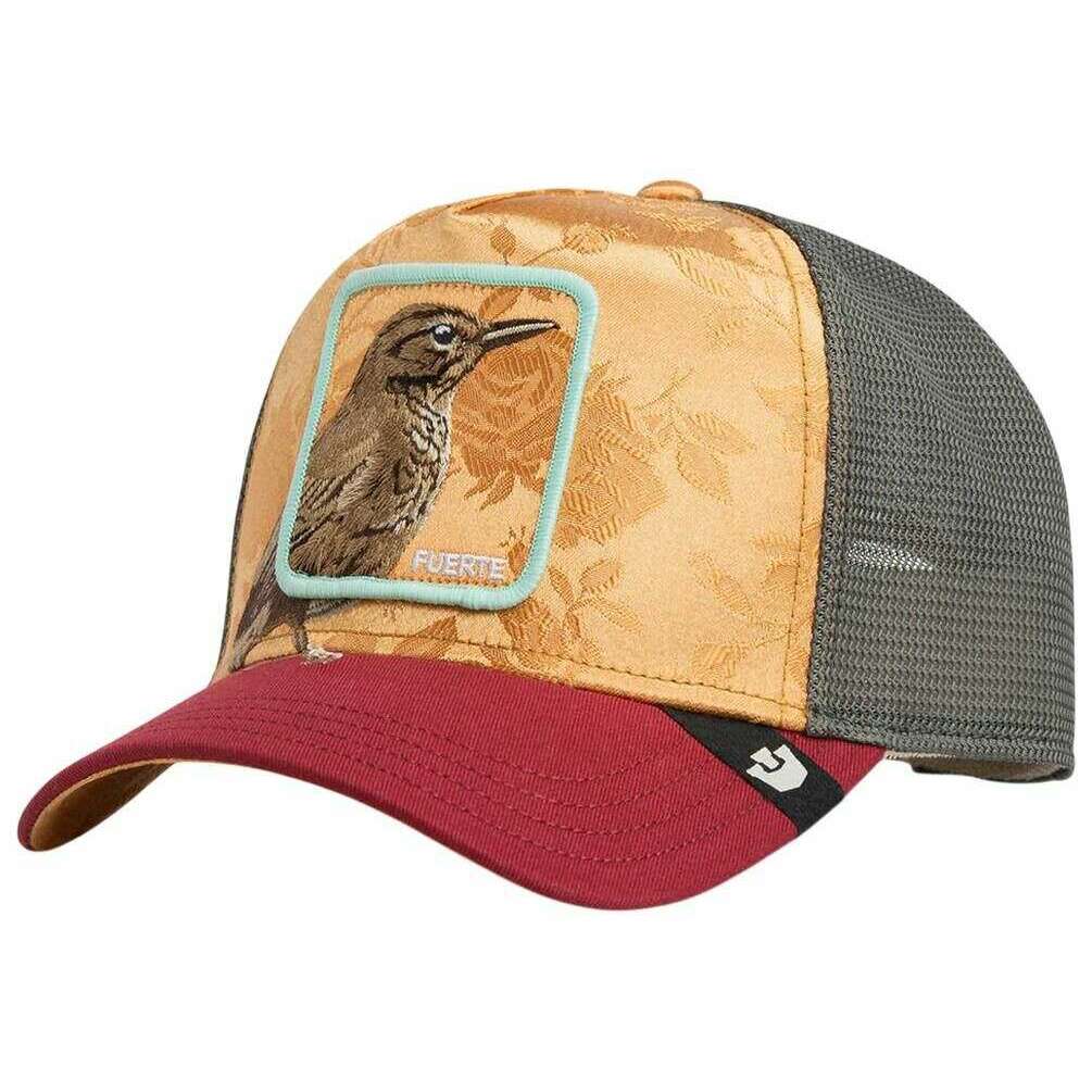 Introducing this unisex costa rica thrush trucker hat by Goorin Bros, it is manufactured from 84% polyester and 16% cotton in a amber colour. All the hats come complete with goorin bros tags. The Goorin Bros Costa Rica Thrush Trucker Hat - Amber brings natural charm and refined detail to any outfit. This distinctive Goorin Bros design features a striking gold-toned front panel adorned with a subtle floral pattern, instantly adding depth and character to the overall look. At the centre sits a high?quality embroidered thrush patch, highlighting the cap s serene, nature?inspired aesthetic. The breathable mesh back ensures pleasant comfort even on warm days, while the adjustable snapback closure guarantees a perfect fit for everyday wear. With its harmonious blend of warm colours, artistic detailing, and premium craftsmanship, this cap is ideal for anyone who values a stylish, natural, yet eye?catching accessory. A true highlight for urban adventures and effortlessly summery outfits.