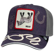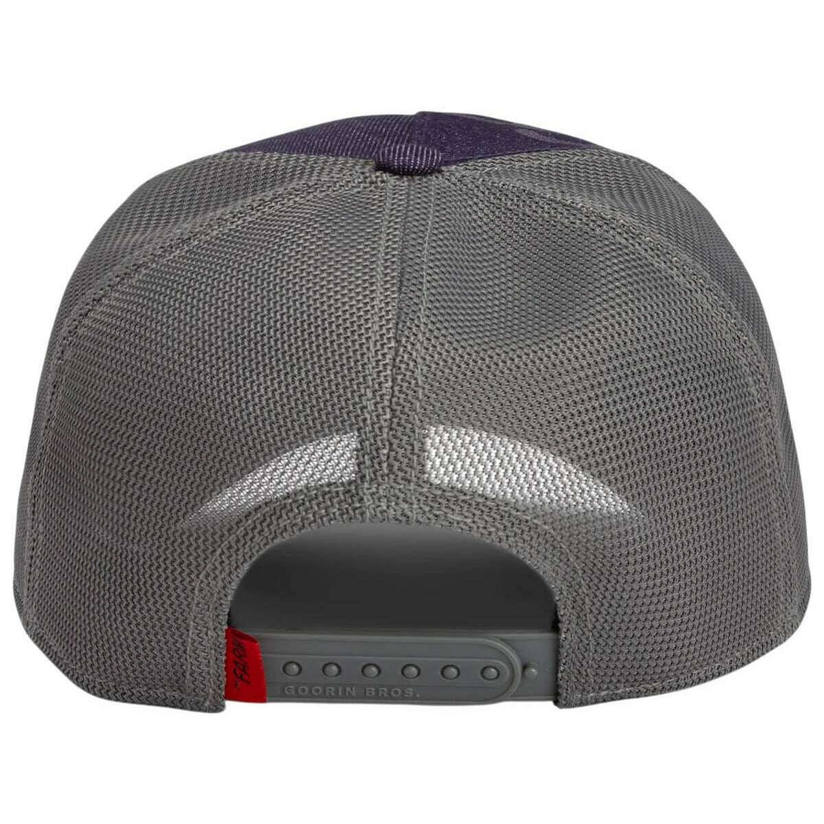 Perfect for men or women is this Goorin Bros purple dead horse trucker hat, it is also made from 57% polyester and 43% cotton. All the hats come complete with goorin bros tags. The Goorin Bros Dead Horse Trucker Hat - Purple is made for those who don t take life too seriously but still know how to dominate every moment. With its laid?back donkey patch, the cap delivers instant attitude, signalling a wearer who plays by their own rules: relaxed, unpredictable, and always a step ahead. Dead Horse More like a statement for anyone who understands when it s time to stop overthinking and just let things flow. The vibrant violet front panel with subtle prints pairs seamlessly with a breathable mesh back, making it perfect for hot days and effortlessly cool appearances. The striking patch with its bold red frame immediately catches the eye, while the curved brim with a stylish accent adds extra streetwear flair. Thanks to the adjustable snapback, it guarantees a perfect fit whether in the city, at festivals, or during late?night adventures. A cap for true originals relaxed, confident, and anything but ordinary. This Goorin Bros design stands out exactly the way real characters do.