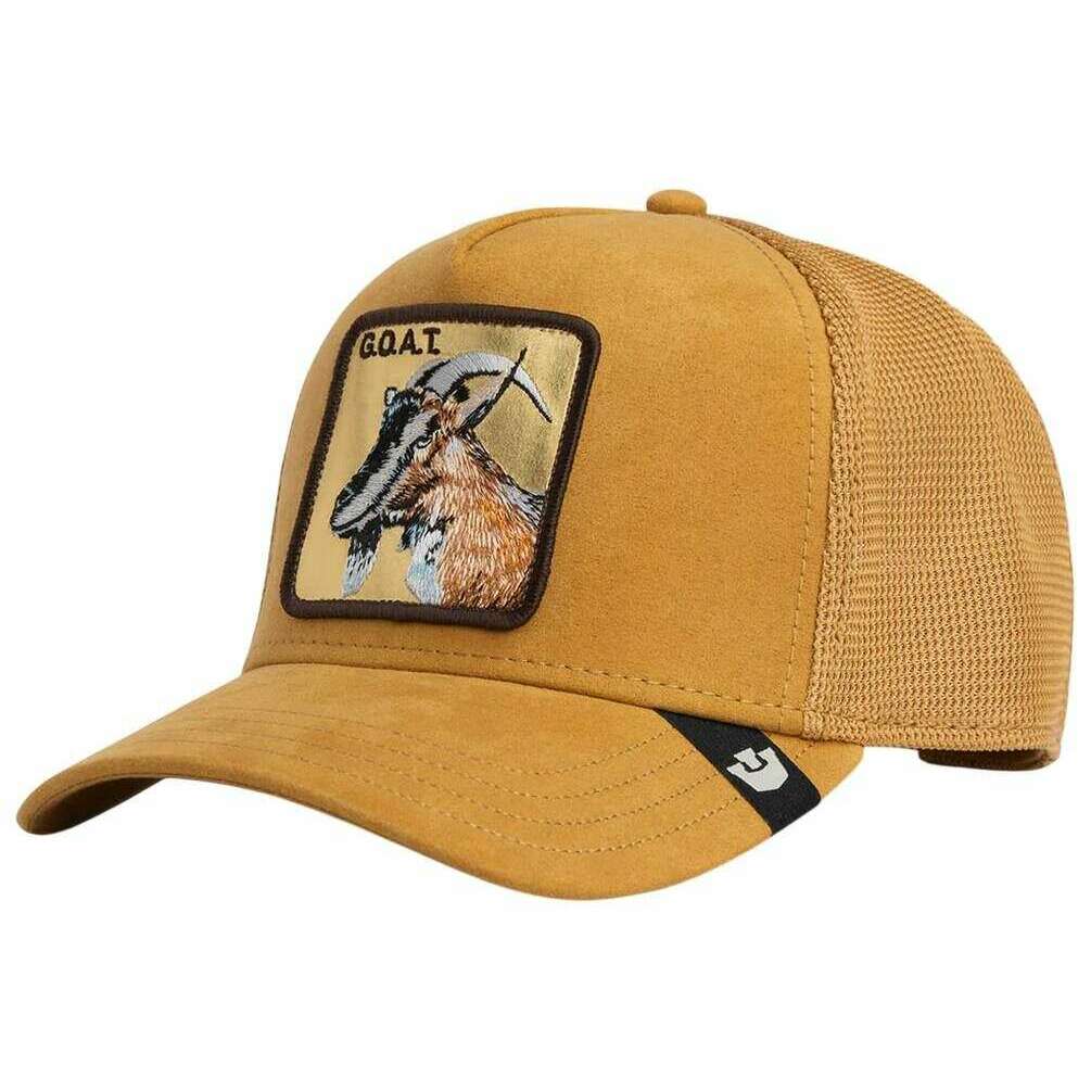 Designer Goorin Bros has brought you this unisex 84% polyester and 16% cotton hat using amber tones. All the hats come complete with goorin bros tags. The Goorin Bros Golden Goat Trucker Hat - Amber blends natural tones with an iconic animal motif that immediately draws attention. As part of the Goorin Bros collection, this cap radiates strength, authenticity, and a subtle hint of wilderness. The artfully embroidered goat patch serves as a bold focal point, transforming the cap into a striking statement piece. Its rich amber suede front panel offers a velvety, luxurious feel that contrasts beautifully with the breathable mesh back. An adjustable snapback closure ensures a consistently perfect and comfortable fit for everyday wear. With its unique colour palette, premium craftsmanship, and unmistakable design, this cap is ideal for anyone who wants to present their style confidently, earthily, and genuinely. A must?have for those who appreciate natural elegance with a rugged edge.