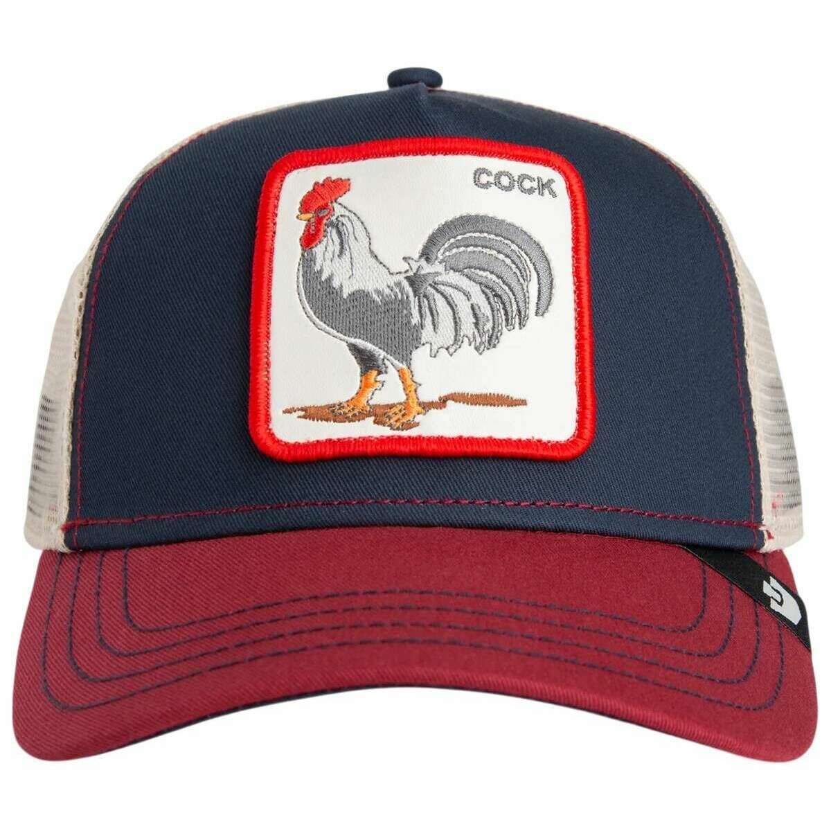 Perfect for men or women is this Goorin Bros edge navy/crush red rooster trucker hat, it is also made from 57% polyester and 43% cotton. All the hats come complete with goorin bros tags. The Goorin Bros Rooster Trucker Hat - Edge Navy/Crush Red is made for those who don t hide. Featuring a striking white rooster patch, this cap sends a clear message: the wearer sets the tone loud, proud, and unapologetically themselves. The dynamic colour combination of a navy front panel, a rich burgundy visor, and beige mesh backing gives the cap a strong street?style presence. The breathable mesh ensures day?long comfort, while the adjustable snapback closure guarantees a perfect fit whether navigating city life or taking charge in everyday moments. A true statement piece, this Goorin Bros cap blends charisma, character, and style perfect for anyone who leads with confidence and isn t afraid to show it.