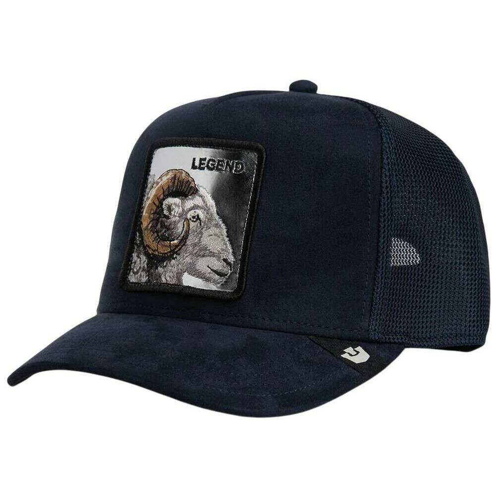 Using navy 84% polyester and 16% cotton, this silver legend trucker hat by Goorin Bros is perfect for men or women and a must have. All the hats come complete with goorin bros tags. The Goorin Bros Silver Legend Trucker Hat - Edge Navy brings premium design and rugged confidence together in one striking Goorin Bros piece. Its deep navy colour gives the cap a strong, sophisticated presence that stands out without shouting. At the centre lies the artfully embroidered ram patch symbolising strength, endurance, and character. The velvety suede front panel adds a refined, luxurious touch, while the breathable mesh back ensures optimal comfort throughout the day. With an adjustable snapback closure, the fit is always precise and comfortable. Combining fine materials, detailed embroidery, and an iconic animal emblem, this cap is perfect for anyone who wants to express style awareness with a confident, rugged edge. A true statement piece for those who lead with quiet power.