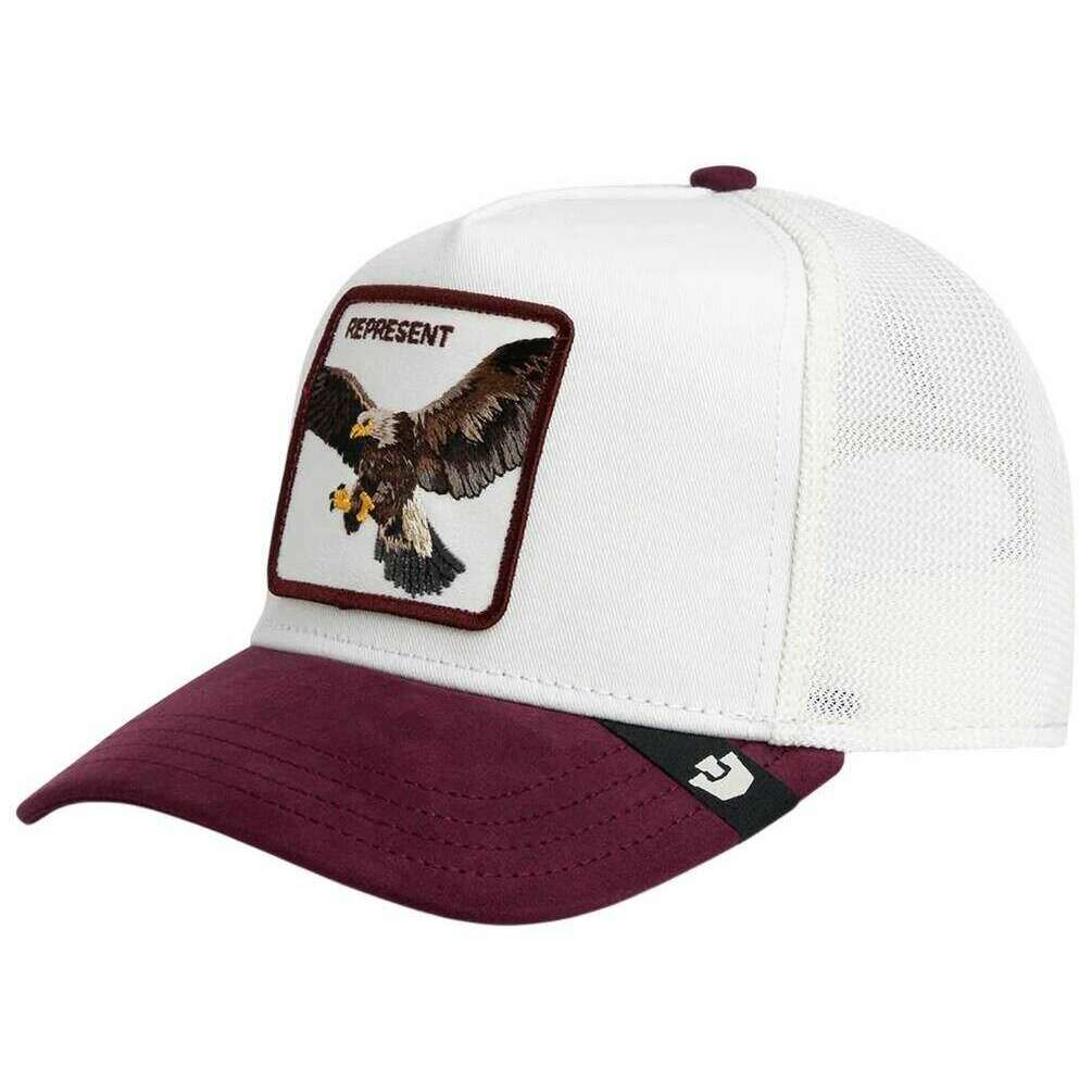 Using white 78% polyester and 22% cotton, this suede eagle trucker hat by Goorin Bros is perfect for men or women and a must have. All the hats come complete with goorin bros tags. The Goorin Bros Suede Eagle Trucker Hat - Dust White/Desire Red brings powerful character to any outfit. This standout Goorin Bros design blends clean white tones with a deep Desire Bordeaux suede visor, creating a striking contrast that immediately draws attention and elevates your look. At the centre sits an intricately embroidered eagle patch representing strength, freedom, and unwavering character. The robust front panel ensures a defined shape, while the breathable mesh back provides outstanding comfort for everyday wear. With its adjustable snapback closure, the cap guarantees a customised, secure fit. Combining high?quality craftsmanship, refined colour accents, and an iconic eagle motif, this cap is perfect for anyone who wants to express personality and style with confidence. A premium, eye?catching addition to any wardrobe.