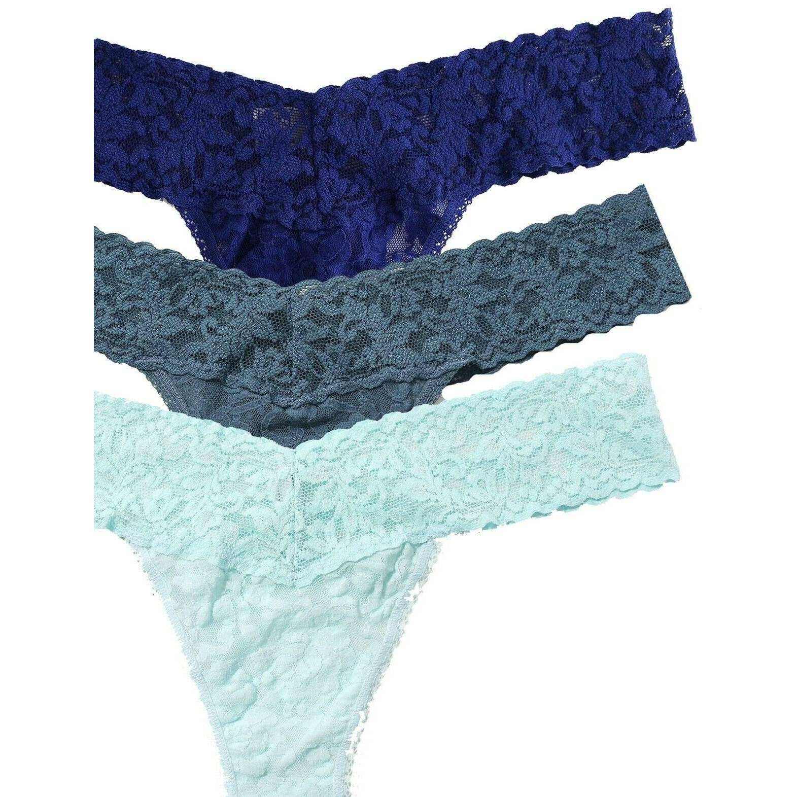 Hanky Panky Signaure Lace Low Rise 3 Pack Thong - Odyssey Blue/Storm Cloud/Celeste