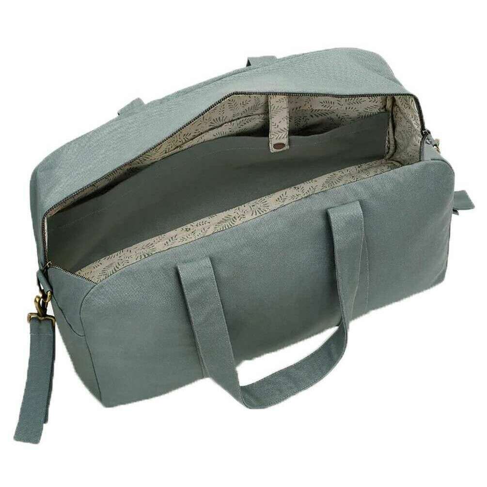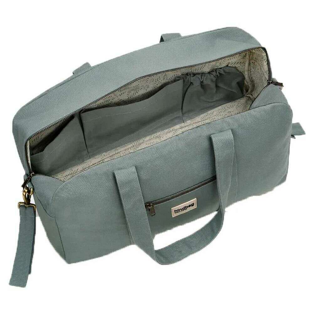 This well made unisex basile baby bag from Hindbag comes in a sage green colour and is manufactured from 100% organic cotton (500g/m2). It measures 28cm(height) x 48cm(width) x 19cm(depth). All the bags come complete with hindbag packaging. The Hindbag Basile Baby Bag - Sage Green is a large capacity organic cotton changing bag designed to accompany parents on their everyday journeys and longer outings. With enough room to hold all your baby s essentials, this bag features five pockets for organizing items. The velcro straps can be attached to a stroller for hands-free walking or pushing the stroller, while the adjustable handle gives the option to carry by hand or over the shoulder. The colourful interior lining adds a unique artisanal touch to this baby diaper bag.