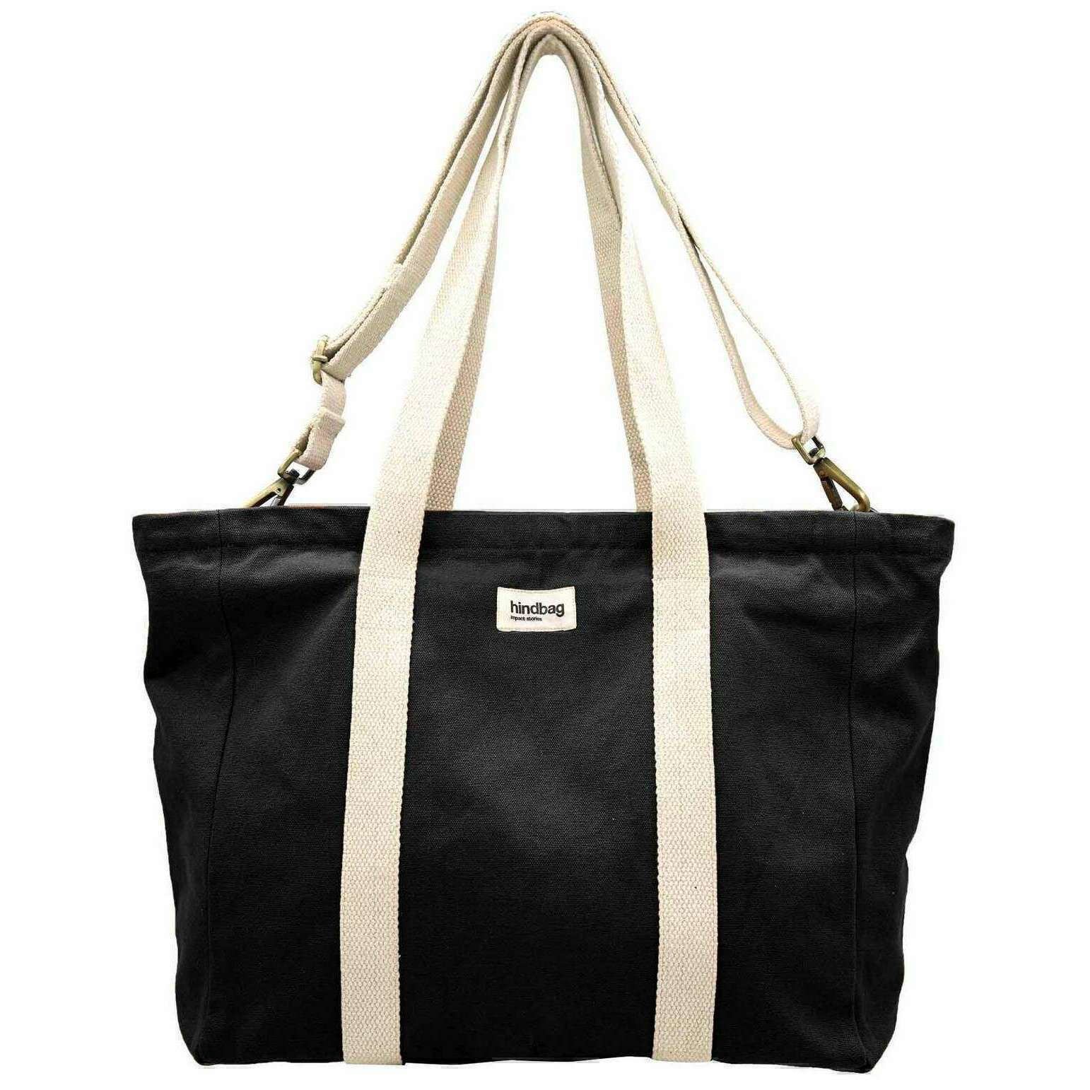 This well made unisex cesar small tote bag from Hindbag comes in a black colour and is manufactured from 100% organic cotton. It measures 33cm(height) x 51cm(width) x 14cm(depth). All the bags come complete with hindbag packaging. The Hindbag Cesar Small Tote Bag - Black is a versatile and eco-conscious accessory designed for everyday use. Crafted from thick, GOTS-certified organic cotton, this tote combines durability with sustainability. The spacious interior makes it ideal for carrying essentials, including a medium-sized laptop in an Ava case. Featuring a secure zip closure and an inner pocket for organization, the design of this bag allows for multiple carrying options, over the shoulder, across the body, or by hand, catering to various preferences.