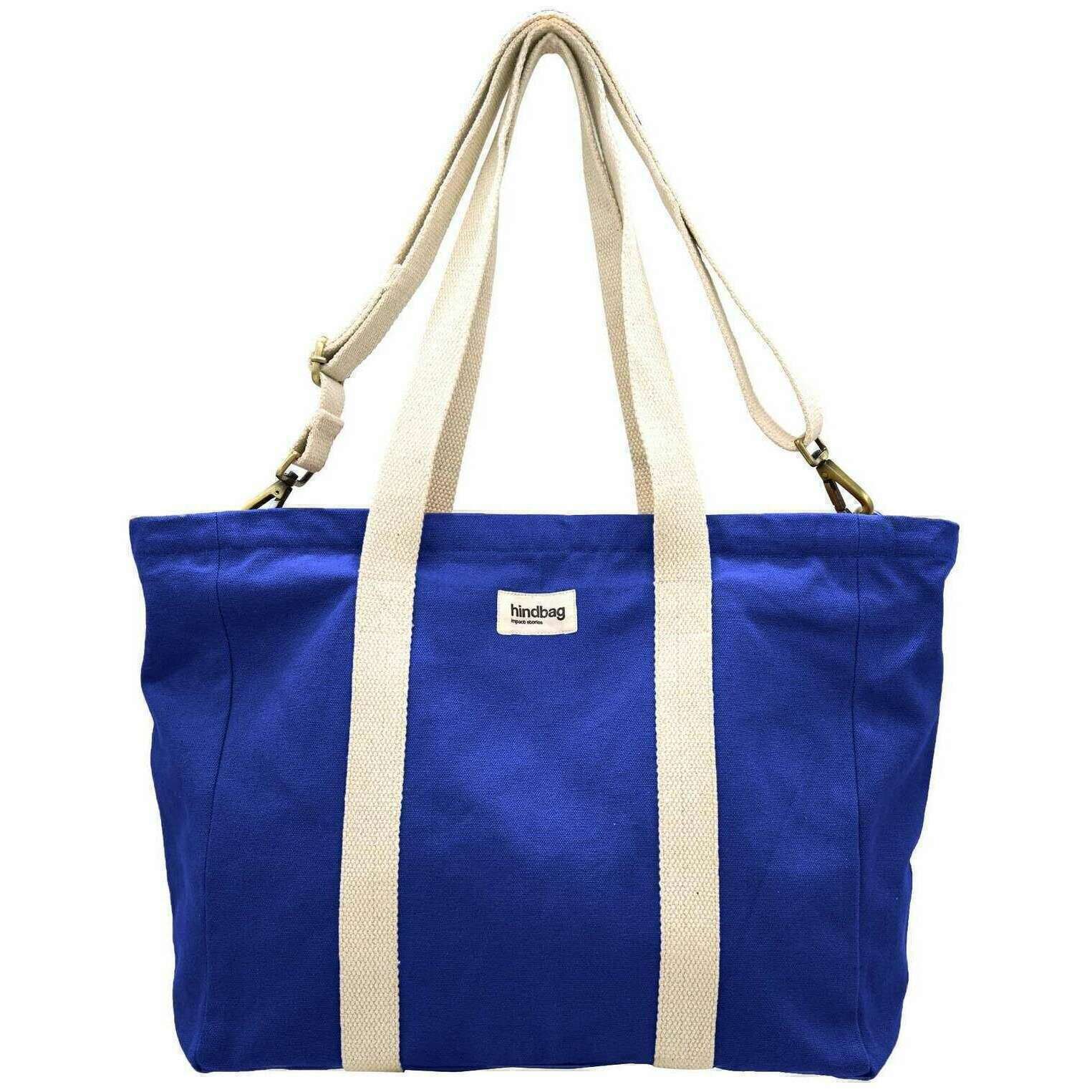 Manufactured from 100% organic cotton is this electric blue unisex cesar small tote bag by the designer Hindbag. It measures 33cm(height) x 51cm(width) x 14cm(depth). All the bags come complete with hindbag packaging. The Hindbag Cesar Small Tote Bag - Electric Blue is a versatile and eco-conscious accessory designed for everyday use. Crafted from thick, GOTS-certified organic cotton, this tote combines durability with sustainability. The spacious interior makes it ideal for carrying essentials, including a medium-sized laptop in an Ava case. Featuring a secure zip closure and an inner pocket for organization, the design of this bag allows for multiple carrying options, over the shoulder, across the body, or by hand, catering to various preferences.