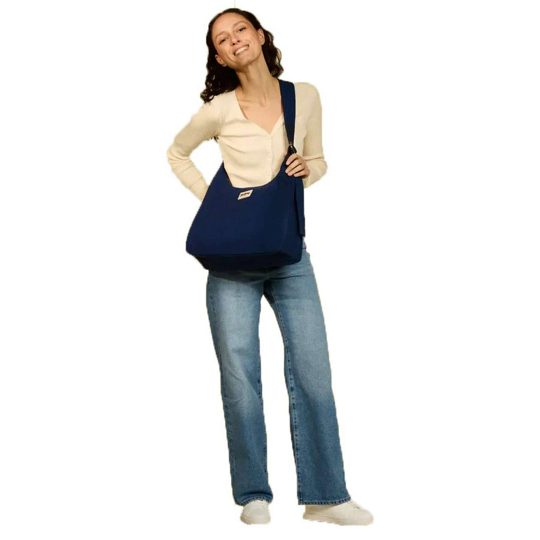 Using navy 100% organic cotton (500g/m2), this claire hobo bag by Hindbag is perfect for men or women and a must have. It measures 29cm(height) x 36cm(width) x 13cm(depth). All the bags come complete with hindbag packaging. The Hindbag Claire Hobo Bag - Navy Blue is the perfect large shoulder bag to accompany your busy days. Featuring a double zip closure that makes it easy to open and close, this bag holds essentials like a wallet, phone, keys, maybe a small tablet, makeup pouch, or sunglasses with ease. The inner zip pocket keeps your essentials protected and within reach. The adjustable strap adapts to your needs and can be worn over the shoulder or crossbody for optimal comfort. Perfect for everyday wear this bag is comfort and style rolled into one.