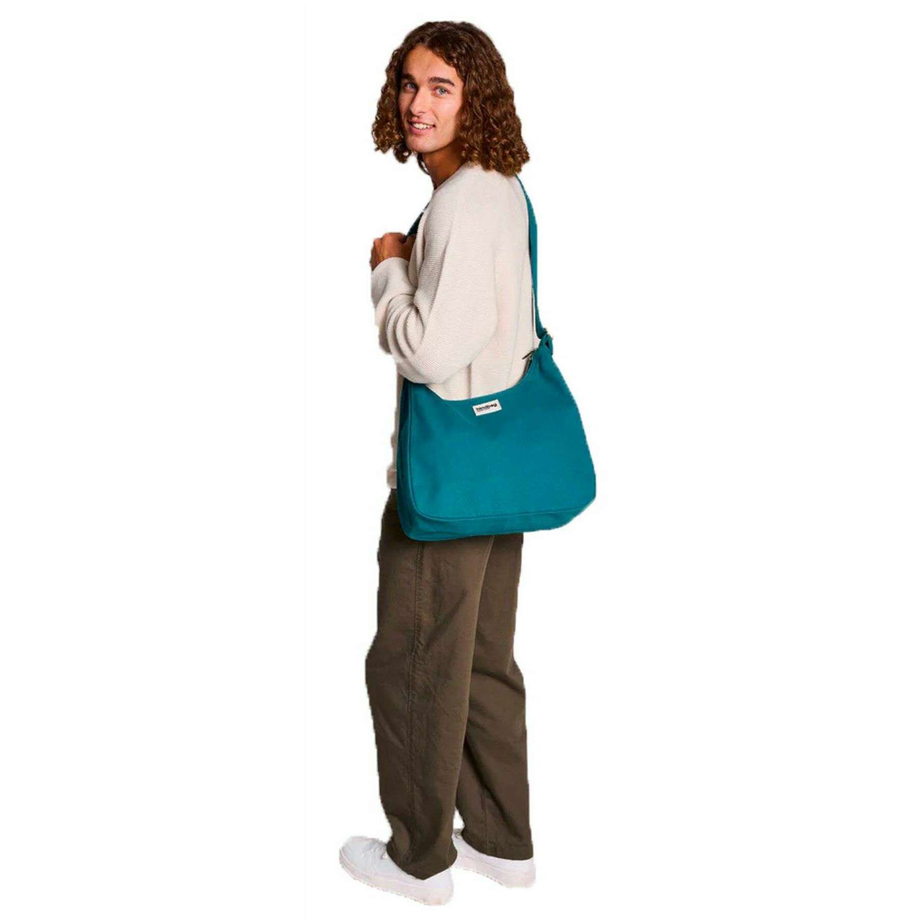 This claire hobo bag for men or women is fashioned by the brand Hindbag in a blue colour and is made from 100% organic cotton (500g/m2). It measures 29cm(height) x 36cm(width) x 13cm(depth). All the bags come complete with hindbag packaging. The Hindbag Claire Hobo Bag - Peacock Blue is the perfect large shoulder bag to accompany your busy days. Featuring a double zip closure that makes it easy to open and close, this bag holds essentials like a wallet, phone, keys, maybe a small tablet, makeup pouch, or sunglasses with ease. The inner zip pocket keeps your essentials protected and within reach. The adjustable strap adapts to your needs and can be worn over the shoulder or crossbody for optimal comfort. Perfect for everyday wear this bag is comfort and style rolled into one.