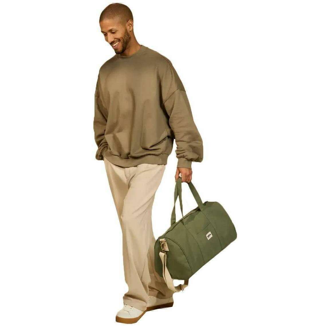 This well made unisex gabriel weekend bag from Hindbag comes in a olive green colour and is manufactured from 100% organic cotton. It measures 24cm(height) x 24cm(width) x 48cm(depth). All the bags come complete with hindbag packaging. The Hindbag Gabriel Weekend Bag - Olive Green offers ample room to store all your essentials for your getaway trips! Featuring 3 interior patch pockets and an exterior pocket, it offers optimal space to carry your essentials while keeping them well organized. With its adjustable and detachable shoulder strap you have versatility in carrying options while the comfortable carry handles allow for easy hand carrying. For added security, Gabriel is equipped with a robust zipper that keeps your belongings well-protected and complements both casual and formal outfits, making it a versatile accessory for various occasions.