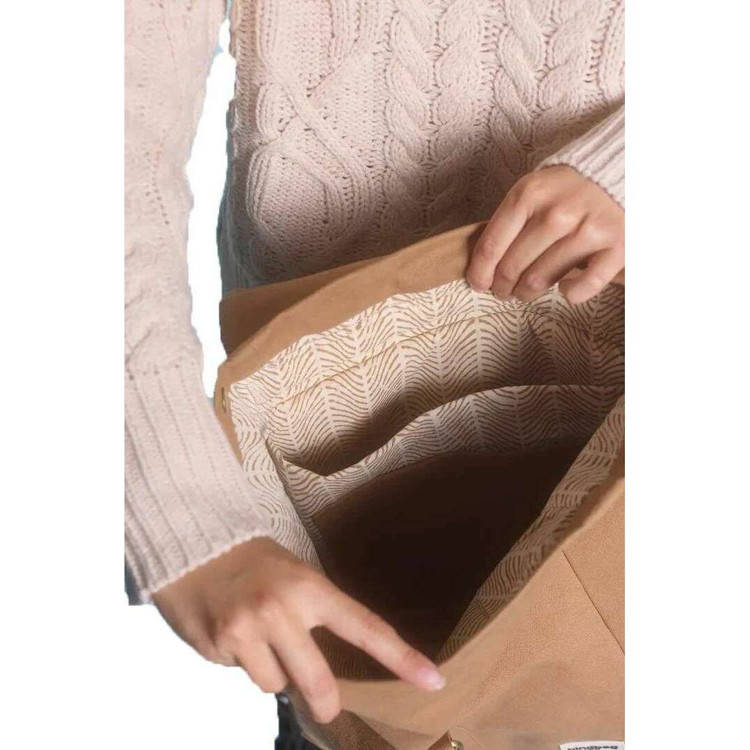 Introducing this unisex guillaume flap backpack by Hindbag, it is manufactured from 100% organic cotton (500g/m2) in a cinnamon brown colour. It measures 48cm(height) x 30cm(width) x 15cm(depth). All the bags come complete with hindbag packaging. The Hindbag Guillaume Flap Backpack - Cinnamon Brown is a sleek yet practical everyday companion, designed with equal attention to style, durability, and sustainability. Crafted from thick, GOTS-certified organic cotton, this bag features a spacious main compartment that can comfortably house a 15-inch laptop, books, or daily essentials, and a series of smaller interior pockets to keep your belongings neatly organized. The adjustable handles with foam will offer you comfort and robustness, making this backpack versatile enough for both professional and casual settings.