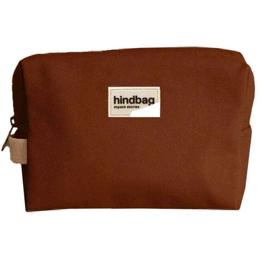 Manufactured from 100% organic cotton is this chocolate brown unisex leon toiletry bag by the designer Hindbag. It measures 16cm(height) x 22cm(width) x 8cm(depth). All the bags come complete with hindbag packaging. The Hindbag Leon Toiletry Bag - Chocolate Brown is a sleek and practical accessory designed for travellers and daily commuters who value both style and functionality. The practical handle ensures easy handling, and the secure zipper closure keeps your essentials safe. Lined with matching organic cotton in a block print pattern, this bag offers ample space for your toiletries without being bulky.