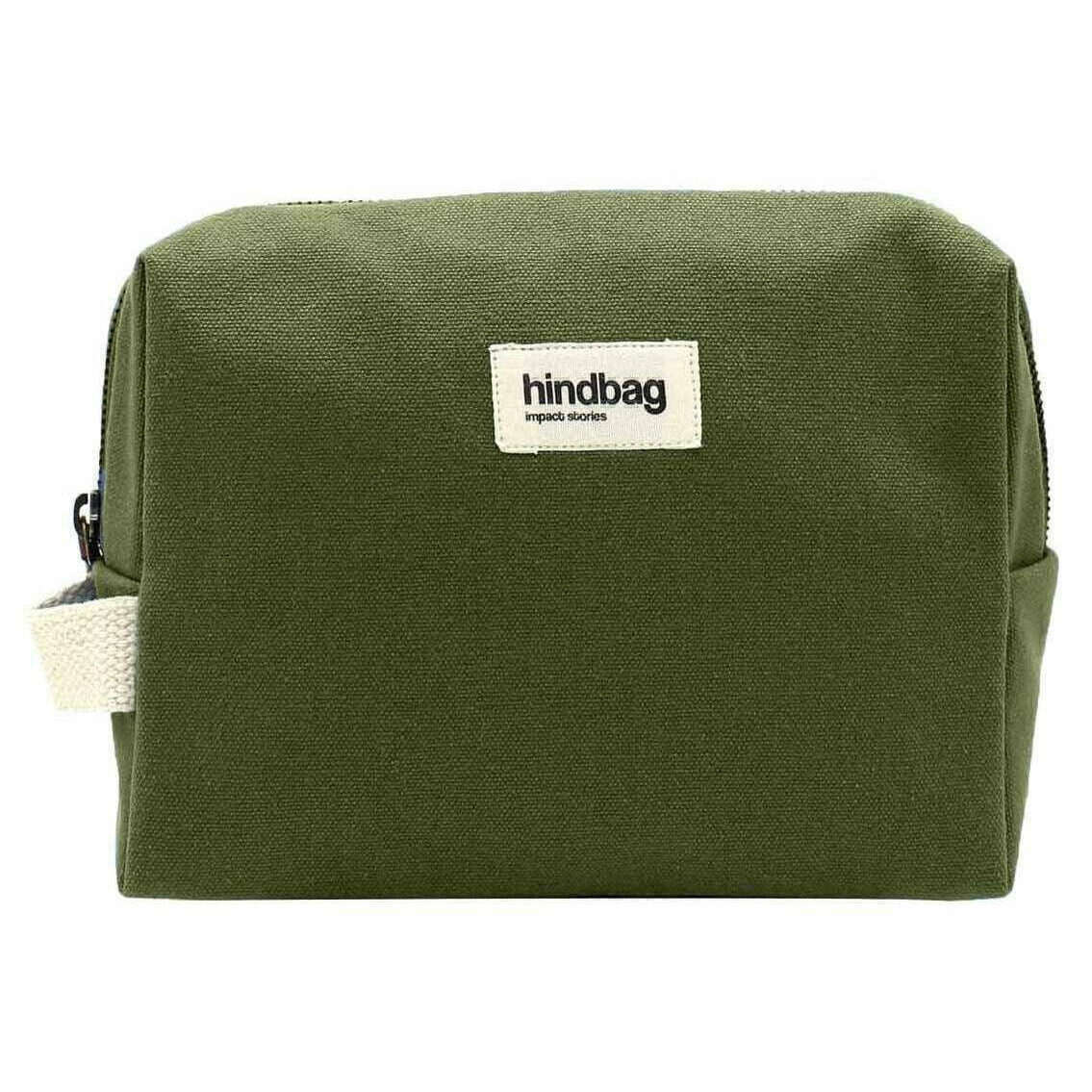 Using green 100% organic cotton, this leon toiletry bag by Hindbag is perfect for men or women and a must have. It measures 16cm(height) x 22cm(width) x 8cm(depth). All the bags come complete with hindbag packaging. The Hindbag Leon Toiletry Bag - Olive Green is a sleek and practical accessory designed for travellers and daily commuters who value both style and functionality. The practical handle ensures easy handling, and the secure zipper closure keeps your essentials safe. Lined with matching organic cotton in a block print pattern, this bag offers ample space for your toiletries without being bulky.