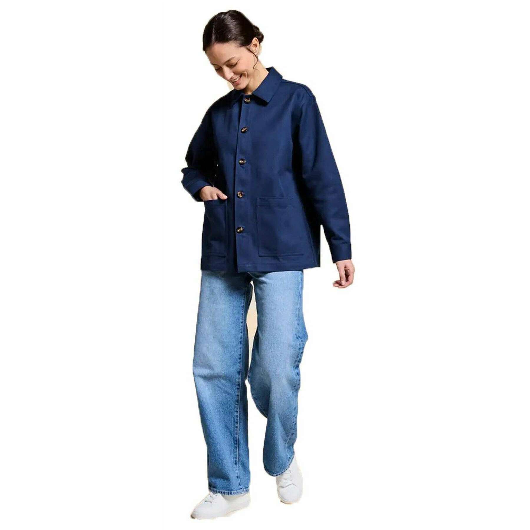 This unisex marcel jacket has been made from 100% organic cotton (500g/m2), featured in a navy colour and is from the brand Hindbag. All the jackets come complete with hindbag packaging. The Hindbag Marcel Jacket - Navy Blue is a piece that blends softness and strength, that feels both gentle and modern. Made from thick, highly UV-resistant GOTS-certified organic cotton, this mid-season jacket features 2 outside pockets for easy access, plus one interior pocket for secure storage. Subtle embroidered details and patterned interior accents give this jacket personality without overwhelming its minimalist aesthetic.