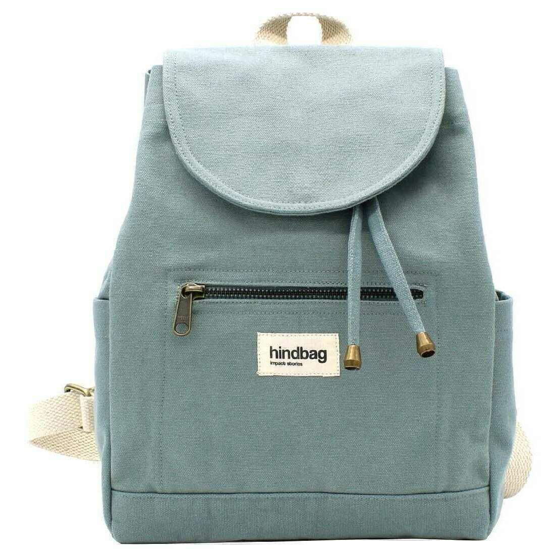 This well made unisex mini eliot small backpack from Hindbag comes in a sage blue colour and is manufactured from 100% organic cotton. It measures 31cm(height) x 24cm(width) x 13cm(depth). All the bags come complete with hindbag packaging. The Hindbag Mini Eliot Small Backpack - Sage Blue is suitable for young and old alike! Featuring two exterior pockets and one interior pocket, you can slip in what you need while keeping your hands free. The timeless design of this mini backpack blend vintage charm with modern functionality, making them a popular choice for daily use.