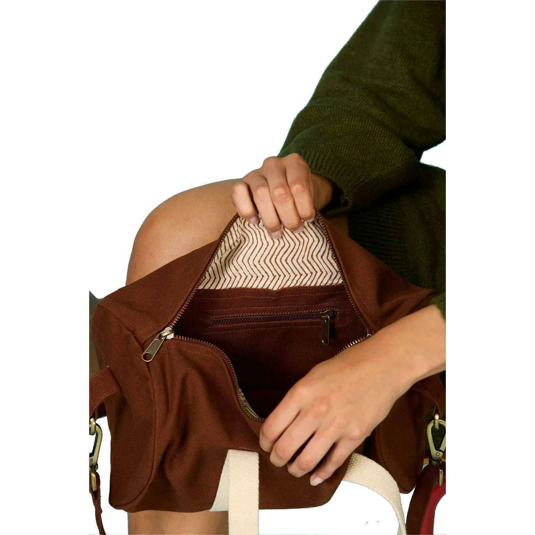 Using brown 100% organic cotton, this mini simon small duffle bag by Hindbag is perfect for men or women and a must have. It measures 18cm(height) x 35cm(width) x 18cm(depth). All the bags come complete with hindbag packaging. The Hindbag Mini Simon Small Duffle Bag - Chocolate Brown is a versatile and eco-conscious travel companion designed for those seeking functionality without compromising on style. Featuring an outer zippered pocket and adjustable shoulder strap for comfort, this duffel bag offers ample space for essentials while maintaining a sleek profile, making it ideal for weekend getaways, gym sessions, or daily commutes.