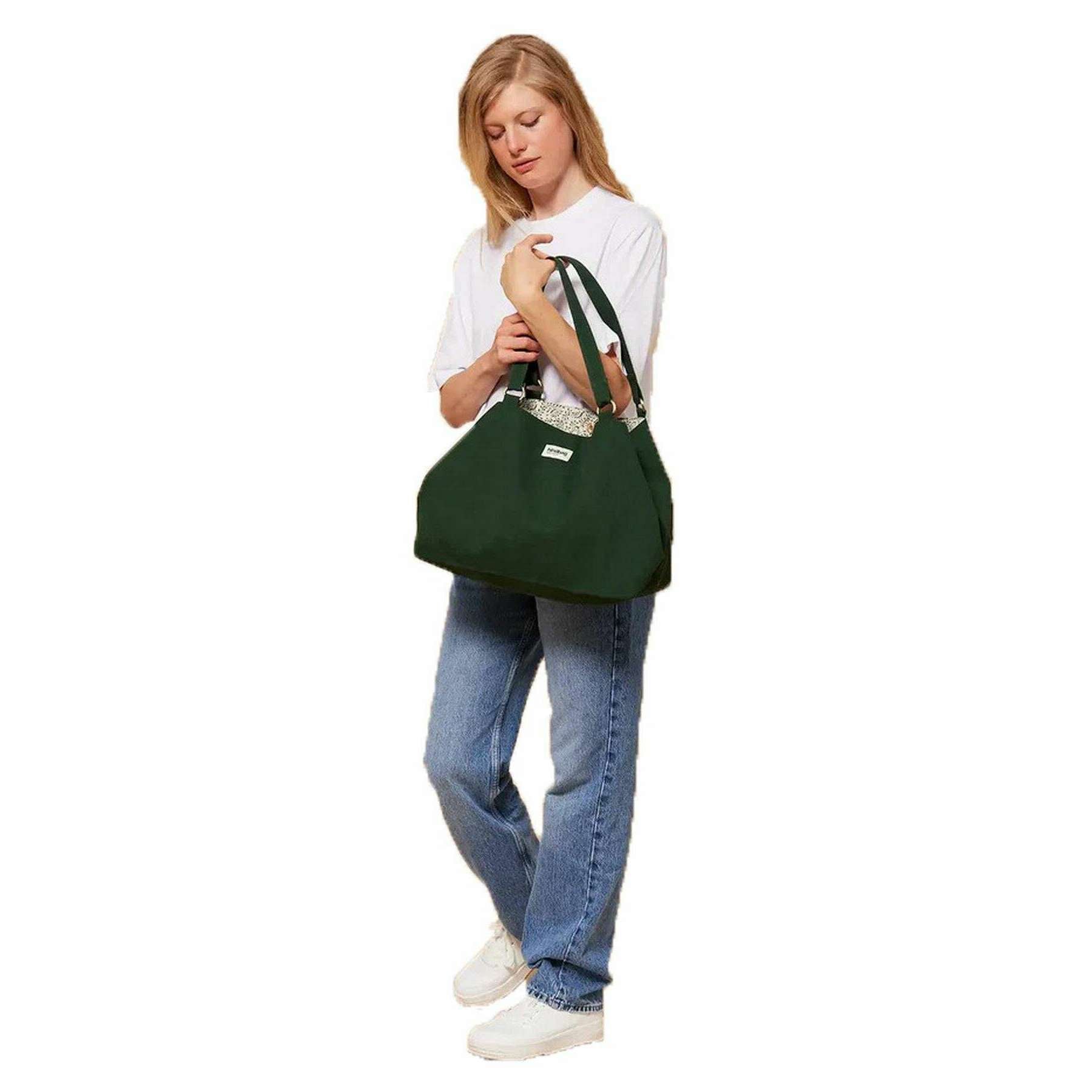This raphaelle tote bag for men or women is fashioned by the brand Hindbag in a green colour and is made from 100% organic cotton (500g/m2). It measures 26cm(height) x 58cm(width) x 19cm(depth). All the bags come complete with hindbag packaging. The Hindbag Raphaelle Tote Bag - Forest Green is the very definition of effortless versatility. Simple yet practical, this bag features a large, zipped pocket which allows you to have all your essentials close at hand. With a double closure with magnetic button and carabiner hooks, you can change the look of this tote to go from a classic tote bag to a more trendy trapeze shape. Minimalist in concept, the tote bag size and presence naturally draw the eye, yet its understated silhouette keeps it elegant.