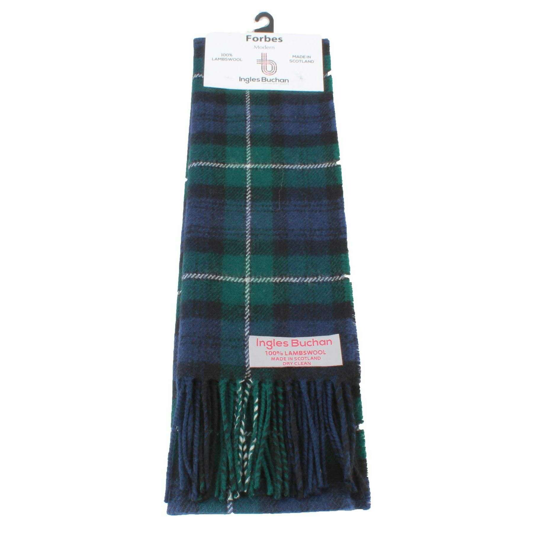 Brought to you by the brand Ingles Buchan, this green/blue/white unisex forbes modern lambswool scarf is made from 100% lambswool. It measures 180cm(height) x 25cm(width). Also the green/blue/white scarf is designed in a tartan pattern, It is recommended to dry clean to keep this scarf in good condition. All the scarves come complete with ingles buchan tags The Ingles Buchan Forbes Modern Lambswool Scarf - Green/Blue/White is a classic colourful tartan piece that is sure to standout and provide you with a stylish fashionable look that would be a suitable for any occasion. Made using the highest quality of Lambswool this checkered green, blue and black modern scarf is of the upmost of comfort.