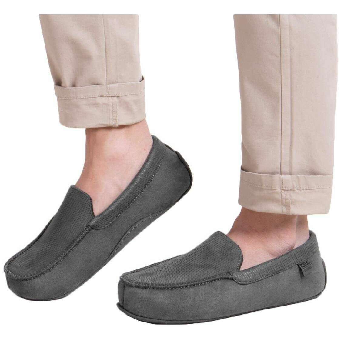 These men's square patterned smart moccasin slippers by the brand Isotoner are made from 100% polyester and are showcased in grey. Also the grey slippers are designed in a plain pattern, It is recommended to machine wash at 30 degrees to keep these slippers in good condition. All the slippers come complete with isotoner packaging. The Isotoner Square Patterned Smart Moccasin Slippers - Grey are a must have pair for any gentleman, offering exceptional comfort, support and warmth! Featuring comfort memory foam and pillow step cushioned technology with a foam layer will feel like you re walking on a cloud with a durable driving sole. This moccasin style will keep your feet nice and toasty with the soft materials and coverage of the foot, whilst having a slight breathable top.