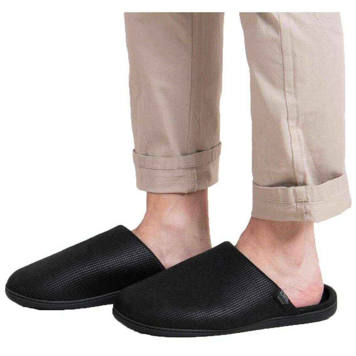 Perfect for men are these Isotoner black square patterned smart mule slippers, they are also made from 100% polyester. Also the black slippers are designed in a plain pattern, It is recommended to machine wash at 30 degrees to keep these slippers in good condition. All the slippers come complete with isotoner packaging. The Isotoner Square Patterned Smart Mule Slippers - Black are a must have pair for any gentleman, offering exceptional comfort, support and warmth! Featuring 360 surround comfort memory foam and pillow step cushioned technology with a foam layer will feel like you re walking on a cloud with the heel and arch support and durable ergo dot sole that ensures a slip-resistant wear. This mule style will keep your feet nice and toasty with the soft materials and coverage of the foot, whilst also being breathable with an open back.