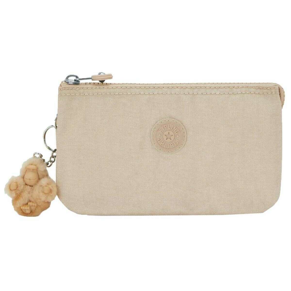 This well made women's creativity large pouch from Kipling comes in a sparkled beige colour and is manufactured from 56% recycled polyamide and 44% polyamide. It measures 11cm(height) x 18.5cm(width) x 4cm(depth). All the bags come complete with kipling packaging. The Kipling Creativity Large Pouch - Sparkled Beige is a compact but highly practical accessory pouch designed to help keep your smaller items organized. Featuring a zip closure along the top to secure contents, this pouch internal compartments and zip pocket is useful for separating small items. With the monkey charm and thoughtful layout and lightweight design, this pouch is a go-to for anyone who values structure and convenience without bulk.