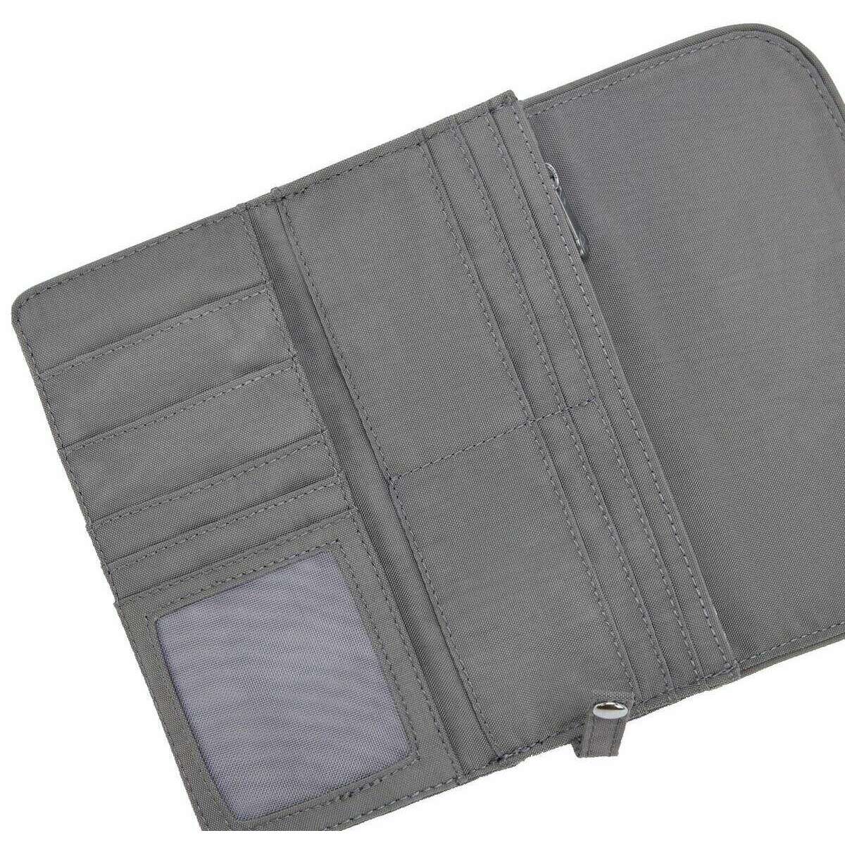 • RFID Technology , Snap Button Closure , Cash Compartments , Ten Credit Card Slots , Interior Zipped Pouch , ID Slot