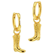 These well made women's cowboy boot hoop earrings from KJ Beckett come in a gold colour and are manufactured from sterling silver. All the earrings come complete with packaging. The KJ Beckett Cowboy Boot Hoop Earrings - Gold is a step up in your style! These western-inspired sterling silver gold plated hoop earrings feature a detailed cowboy boot charm, crafted from sterling silver and finished with warm gold plating for a radiant and stylish look. Lightweight and comfortable, these earrings are perfect for everyday wear or adding a playful western touch to your outfit and make the perfect gift for cowgirl enthusiasts or anyone who loves unique, statement jewellery.