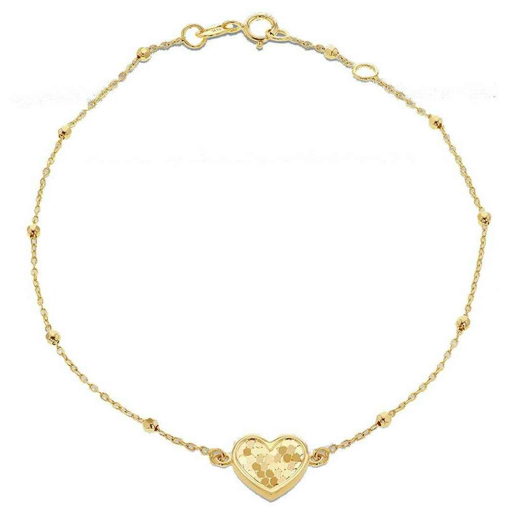 Brought to you by the brand KJ Beckett, this yellow gold women's disco heart adjustable trace and ball bracelet is made from 9ct yellow gold. All the bracelets come complete with packaging. The KJ Beckett Disco Heart Adjustable Trace and Ball Bracelet - Yellow Gold is where sparkle and style meet in this disco heart bracelet! Featuring a textured, faceted heart motif, this design catches the light beautifully for a playful, eye-catching shimmer. Allowing a comfortable and versatile fit for any wrist, this piece is perfect for everyday wear and is a timeless yet fun addition to any jewellery collection.