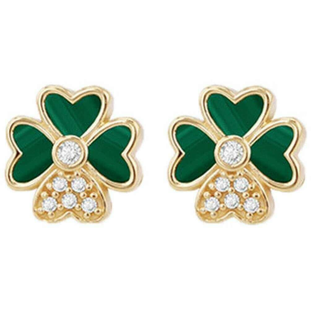 Perfect for women are these KJ Beckett yellow gold/green malachite clover stud earring, they are also made from 9ct yellow gold. All the earrings come complete with packaging. The KJ Beckett Malachite Clover Stud Earring - Yellow Gold/Green are a striking and versatile addition to any jewellery collection! Featuring a beautifully crafted clover-shaped design crafted in warm 9ct yellow gold, with rich green synthetic malachite leaves and a sparkling cubic zirconia centre, these elegant and eye-catching studs are perfect for everyday wear or special occasions and make a thoughtful gift or a stylish treat for yourself.