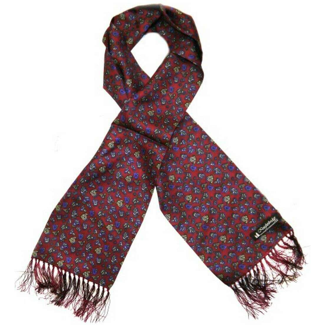 Knightsbridge Neckwear Small Paisley Silk Aviator Scarf - Burgundy/Blue