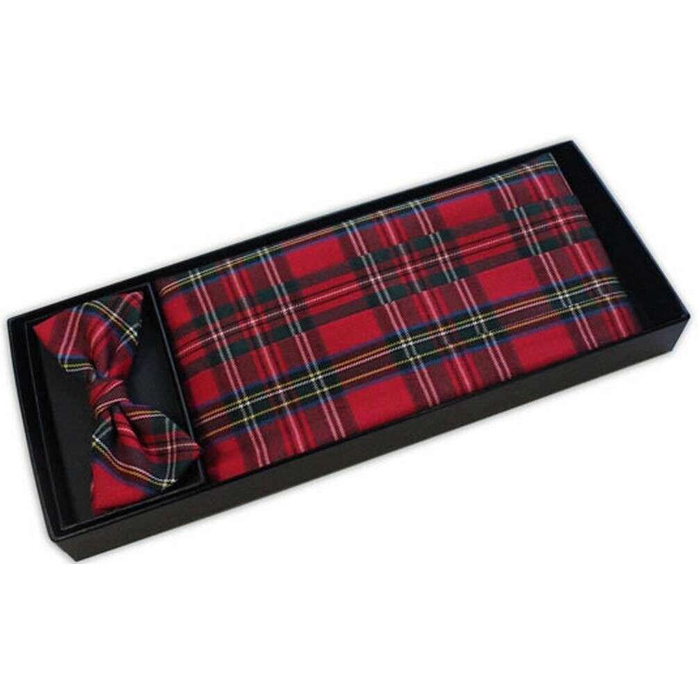Knightsbridge Neckwear Tartan Cummerbund and Bow Tie Set - Red