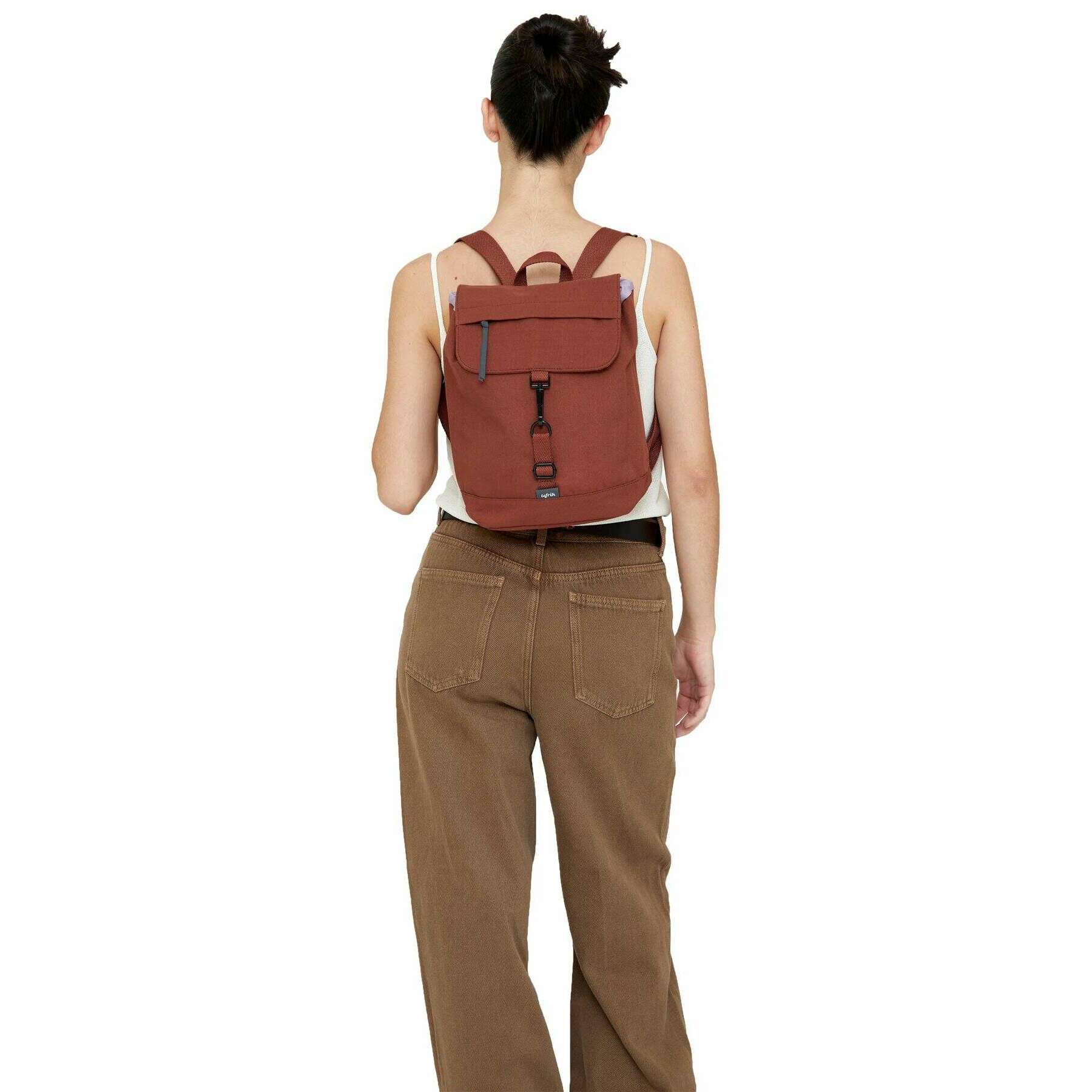This well made unisex arles kaut mini backpack from Lefrik comes in a bronze brown colour and is manufactured from 100% vegan oxford rpet polyester. It measures 30cm(height) x 22cm(width) x 13cm(depth). It is recommended to cold wash and air dry to keep this bag in good condition. All the bags come complete with lefrik packaging. The Lefrik Arles Kaut Mini Backpack - Bronze Brown is the mini version of the iconic Kaut model, featuring a large main compartment and a separate pocket for notebooks or small electronic devices. Perfect for school, work or play, this is lightweight and water resistant. The quick access pocket on the flap and security pocket on the back allow you to store small items comfortably. With just the right amount of space, this vegan and sustainable is designed for convenience.