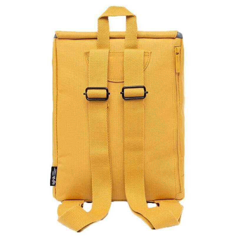 Perfect for men or women is this Lefrik new mustard yellow kaut mini backpack, it is also made from 100% recycled oxford rpet fabric. It measures 30cm(height) x 22cm(width) x 13cm(depth). All the bags come complete with lefrik packaging. The Lefrik Kaut Mini Backpack - New Mustard Yellow is extremely practical and comfortable. This mini version of the iconic Kaut model features a large main compartment and a separate pocket for notebooks or small electronic devices. Perfect for school, work or play, this backpack is lightweight and water resistant. The quick access pocket on the flap and security pocket on the back allow you to store small items comfortably. With just the right amount of space, this vegan and sustainable backpack is designed for convenience.