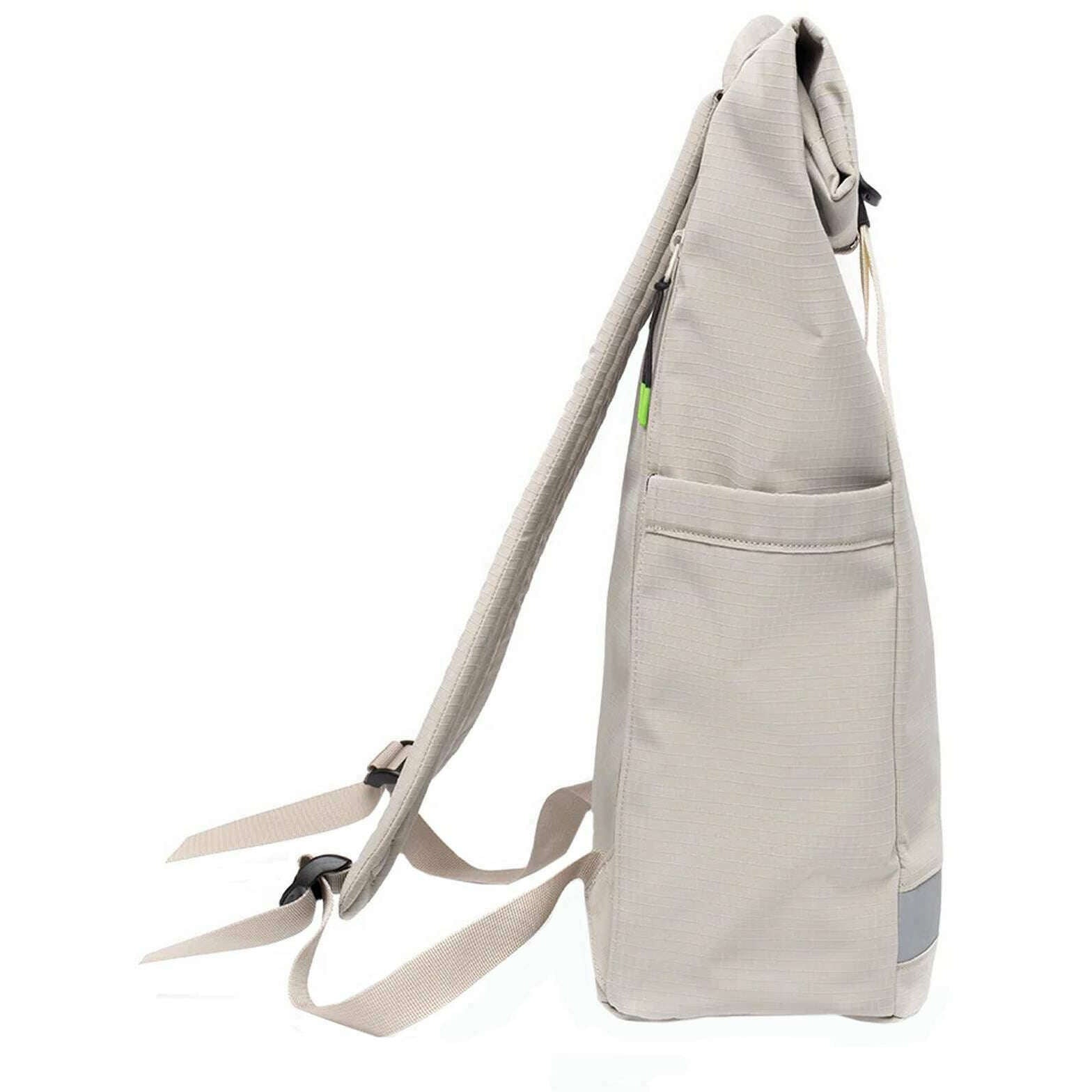 This well made unisex lars roll ripstop backpack from Lefrik comes in a fossil grey colour and is manufactured from 100% vegan oxford rpet polyester. It measures 43cm(height) x 30cm(width) x 15cm(depth). It is recommended to cold wash and air dry to keep this bag in good condition. All the bags come complete with lefrik packaging. The Lefrik Lars Roll Ripstop Backpack - Fossil Grey features a roll-top closure system, which not only adds a contemporary aesthetic but also provides flexibility in adjusting the bag's capacity. Equipped with a spacious main compartment with different organizers and a special padded pocket for laptops up to 15.6 inch, this bag has expandable side pockets for extra capacity and a back security pocket. With adjustable padded handles, this vegan friendly allows for carrying comfort.