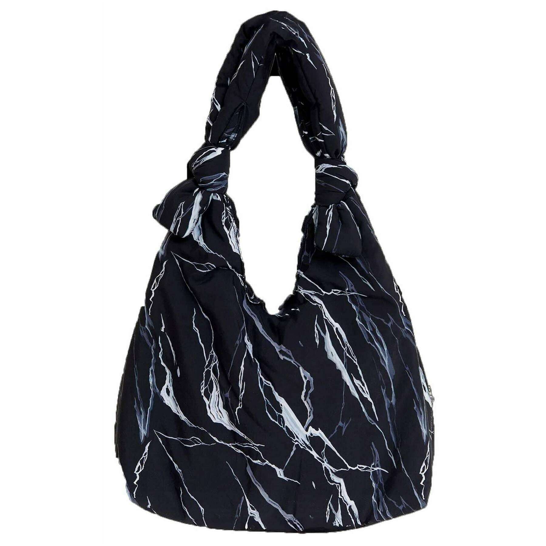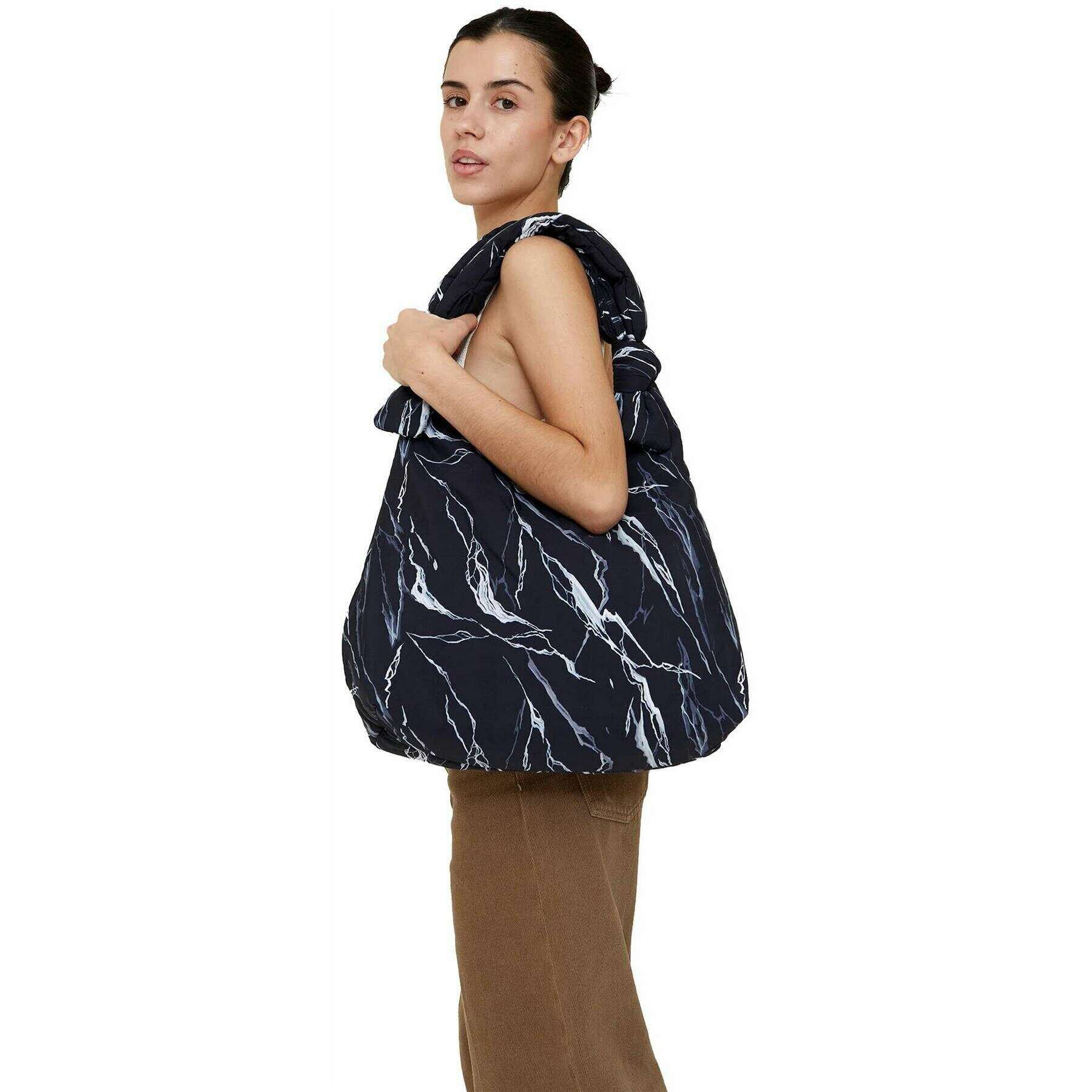 Lefrik Mercedes Bellido Biwa Puffy Shoulder Bag - Rock Print Black