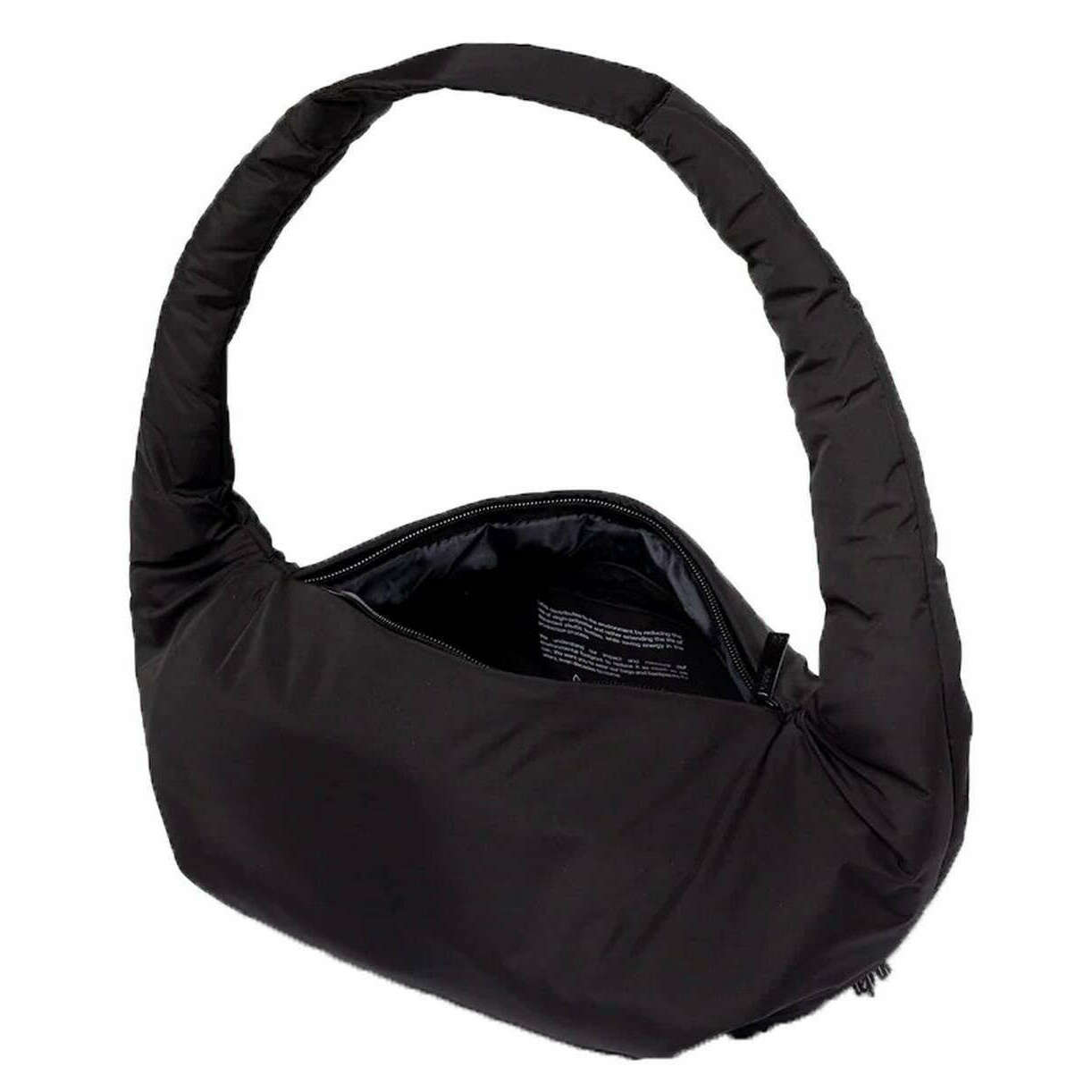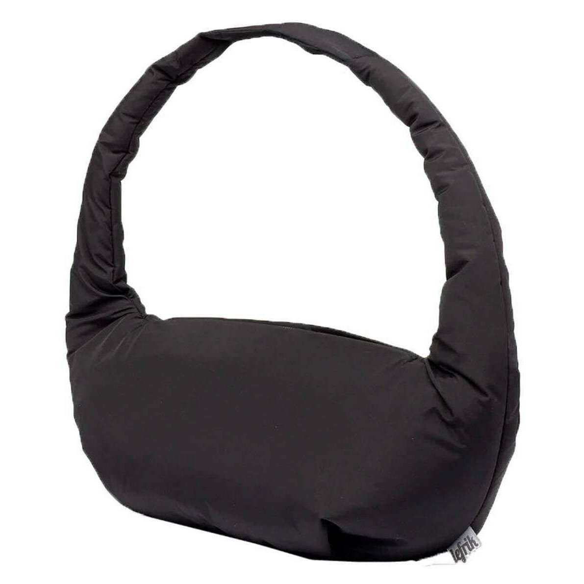 Manufactured from 100% vegan quilted rpet fabric is this black unisex myra mini shoulder bag by the designer Lefrik. It measures 20cm(height) x 21cm(width) x 10cm(depth). All the bags come complete with lefrik packaging. The Lefrik Myra Mini Shoulder Bag - Black is designed with practicality in mind. This rounded shoulder bag features a circular handle for a modern look. With top zipper closure and additional zippered pockets to help organize your belongings efficiently and keep them secured, this lightweight and easy to carry bag complements various outfits and occasions.