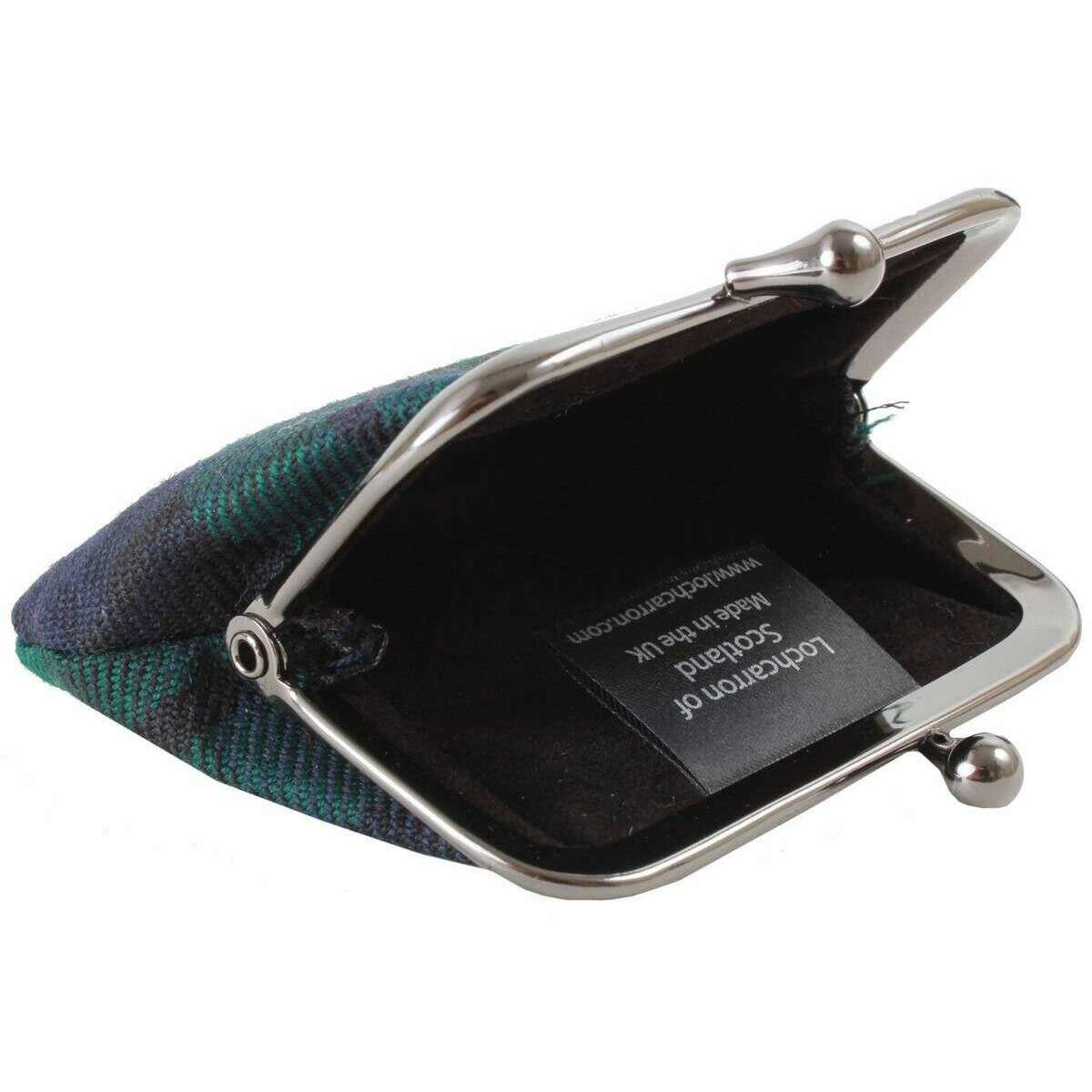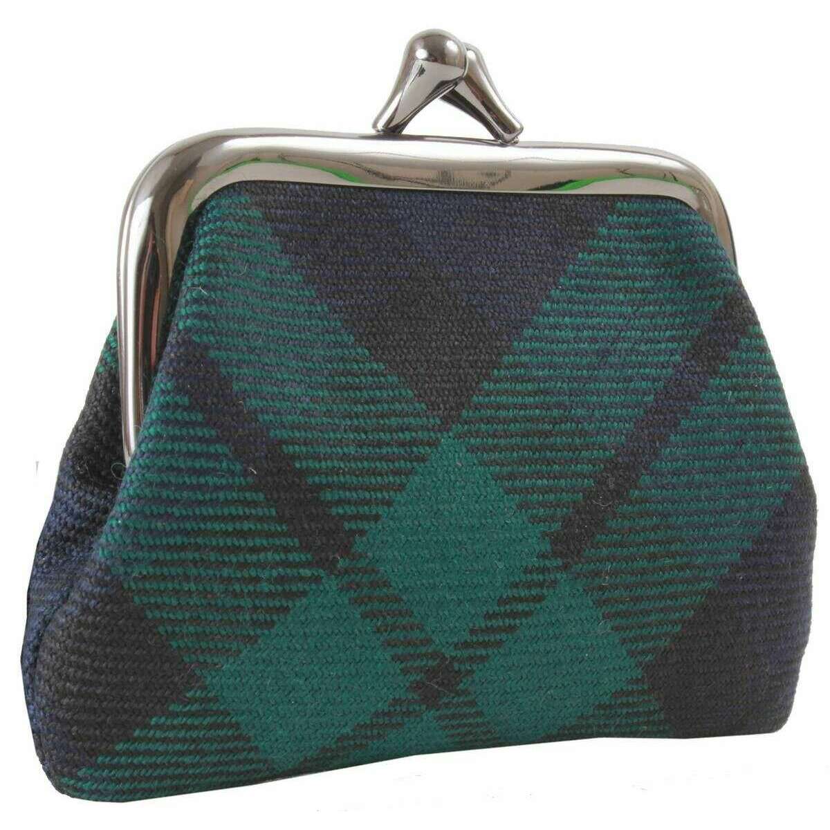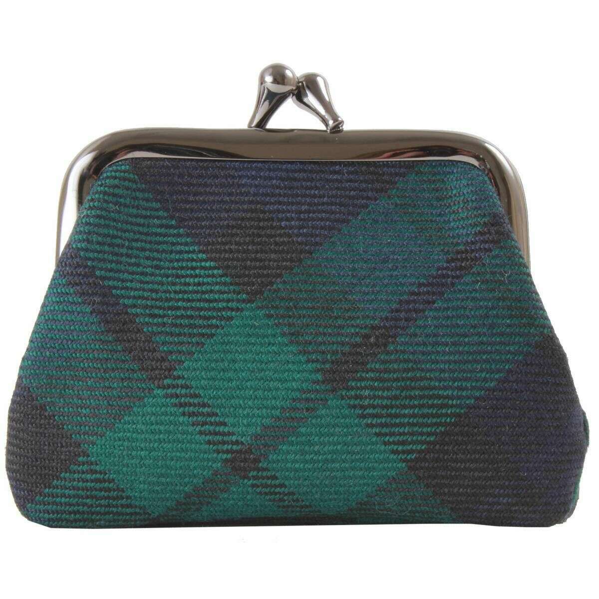 Designer Locharron of Scotland has brought you this women's 100% pure new wool purse using green/navy tones. It measures 8cm(height) x 10.5cm(width). Also the green/navy purse is designed in a tartan pattern, Locharron of Scotland have made this reiver black watch modern small coin purse in Scotland. It is recommended to wipe clean only to keep this purse in good condition. All the purses come complete in locharron of scotland packaging. The Locharron of Scotland Reiver Black Watch Modern Small Coin Purse - Green/Navy is a great accessory to keep in your bag and store your loose change and folded up notes. Its tiny design makes it a cute and stylish companion which will fit in pockets and smaller handbags so will never have to leave it behind. The clasp closure keeps everything inside secure while also giving it that classic look.