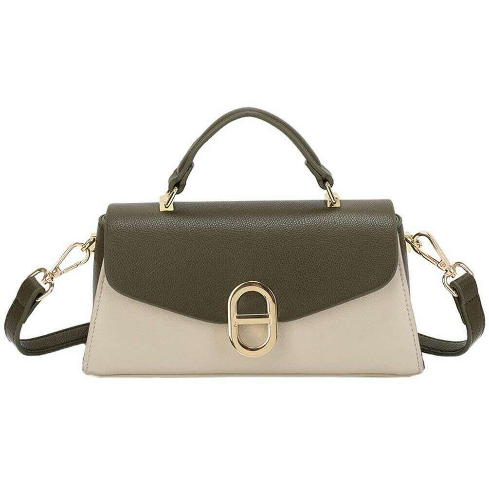 This women's crossbody grab bag by the brand Long and Son is made from 100% polyurethane and is showcased in beige. It measures 11cm(height) x 12cm(width) x 8cm(depth). All the bags come complete with long & son packaging. The Long and Son Crossbody Grab Bag - Green/Beige sweet yet sophisticated is a must-have for women looking to dress up their attire. Featuring a grab handle and a detachable adjustable strap allows for versatility depending on the occasion, whether that is for a date night, drinks with the girls or going for a stroll around the city. This perfectly sized bag is great for fitting all your essentials such as your phone, keys, purse, lip-gloss and more. Complete with gold hardware for a luxurious touch.