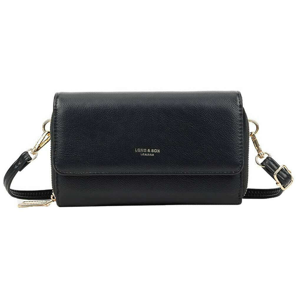 Perfect for women is this Long and Son black purse crossbody bag, it is also made from 100% polyurethane. It measures 12.5cm(height) x 20cm(width) x 5cm(depth). All the bags come complete with long & son packaging. The Long and Son Purse Crossbody Bag - Black is a must-have if you carry lightly. Featuring multiple sections for your smaller belongings, six card holders and a notes compartment for the convenience of not having to pack a purse. The small and compact style is great for a lightweight wear, and the detachable adjustable strap allows a crossbody or shoulder wear whilst also doubling up as a clutch. Complete with subtle Long & Son branding.