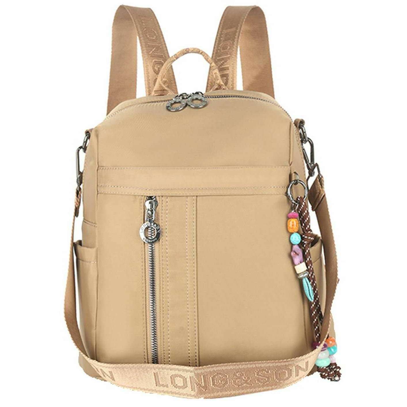 Introducing this women's shoulder backpack by Long and Son, it is manufactured from 100% polyurethane in a light khaki beige colour. It measures 30cm(height) x 29cm(width) x 12cm(depth). All the bags come complete with long & son packaging. The Long and Son Shoulder Backpack - Light Khaki Beige modern and stylish is a must if you are looking for a bag to travel everywhere with you. Perfectly sized to carry all your essentials and more whilst not being overly sized and bulky. Featuring two front zipper pockets, two side open pockets, a back zipper pocket, and multiple interior pockets ensures great storage and organisation for all of your bits and bobs. To top it all this bag not only features adjustable branded back straps but also a branded detachable shoulder strap for a versatile wear. Complete with detachable charms on the front.