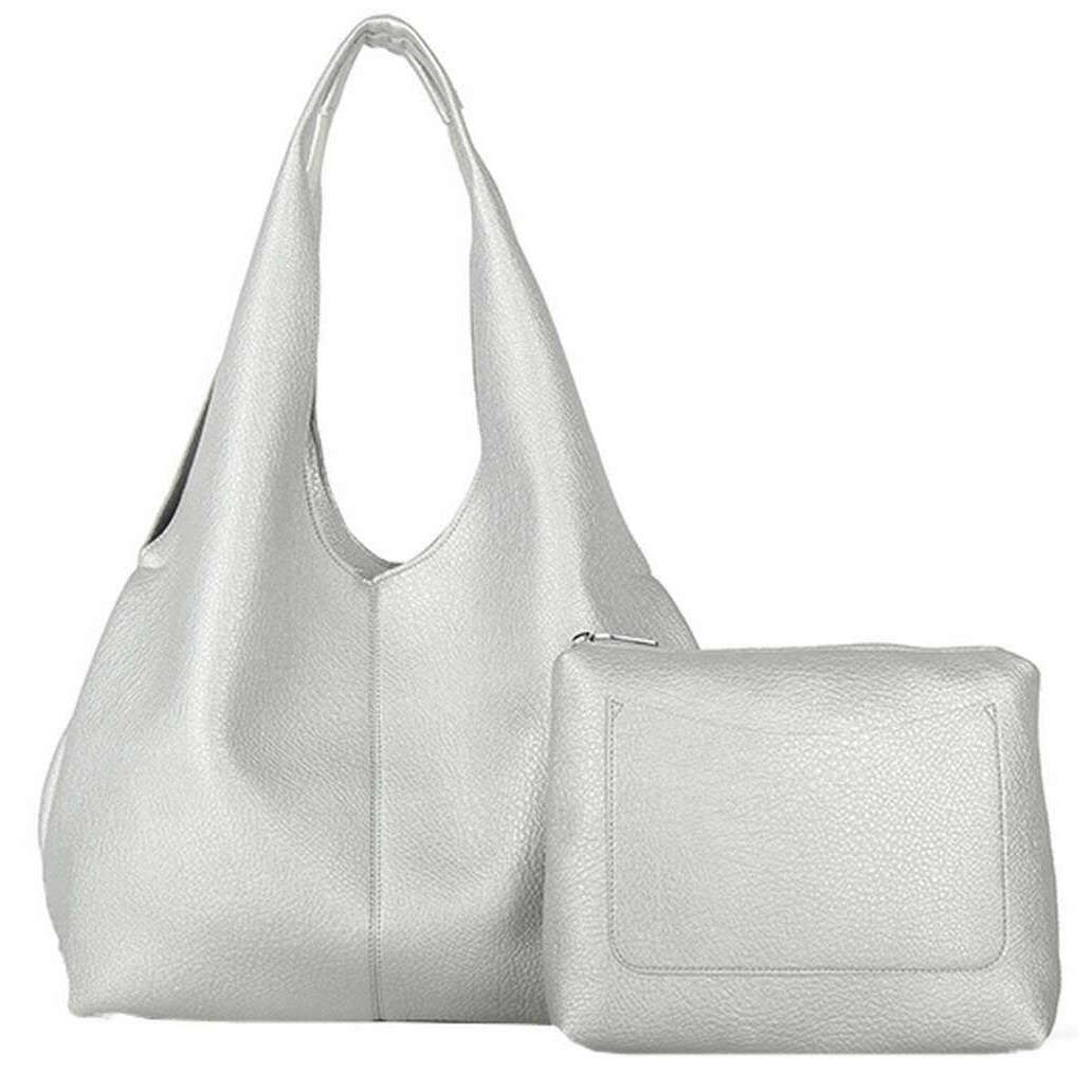 This women's shoulder bag and pouch by the brand Long and Son is made from 100% polyurethane and is showcased in silver. It measures 57.5cm(height) x 45cm(width) x 14cm(depth). All the bags come complete with long & son packaging. The Long and Son Shoulder Bag and Pouch - Silver modern and unique is a great everyday bag. The large interior will hold all your essentials and more, making the perfect bag for running errands, a family day out or just whilst shopping. The shiny faux leather exterior is cruelty-free that adds depth and interest making any outfit more dressed up. Complete with a removable pouch to organise your belongings or to hold more valuable items.