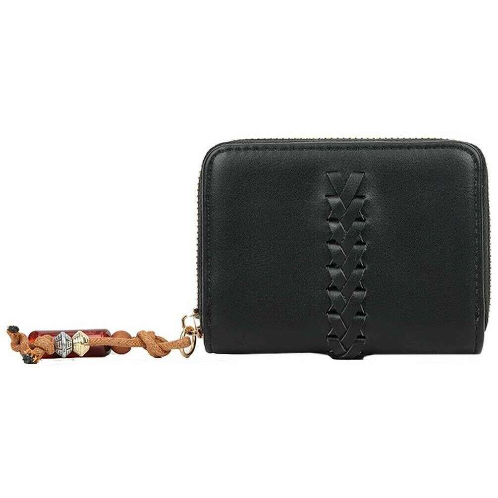 This women's woven detail purse has been made from 100% polyurethane, featured in a black colour and is from the brand Long and Son. It measures 9cm(height) x 12cm(width) x 2.5cm(depth). All the purses come complete with long & son packaging. The Long and Son Woven Detail Purse - Black will become your everyday companion, complimenting your bag and your style when shopping. This small and compact purse features great storage with 12 small sections, a card holder and a zipper pocket. The zippered closures ensure this purse is secure without the fear of losing your valuables. To top it all this purse features RFID blocking technology to prevent unauthorised scanning of your information. Complete with a charm zip pull and subtle gold hardware throughout.