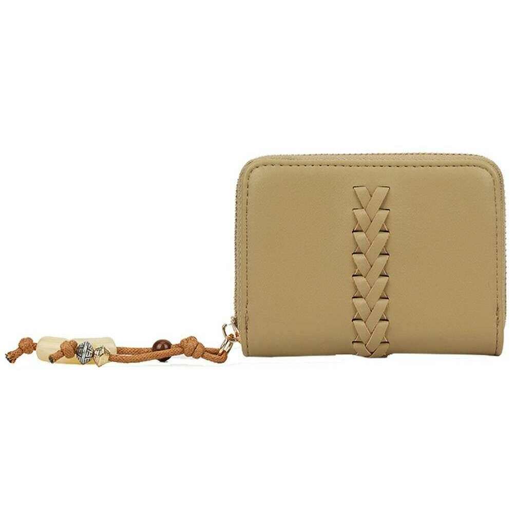 This women's woven detail purse by the brand Long and Son is made from 100% polyurethane and is showcased in beige. It measures 9cm(height) x 12cm(width) x 2.5cm(depth). All the purses come complete with long & son packaging. The Long and Son Woven Detail Purse - Khaki Beige will become your everyday companion, complimenting your bag and your style when shopping. This small and compact purse features great storage with 12 small sections, a card holder and a zipper pocket. The zippered closures ensure this purse is secure without the fear of losing your valuables. To top it all this purse features RFID blocking technology to prevent unauthorised scanning of your information. Complete with a charm zip pull and subtle gold hardware throughout.
