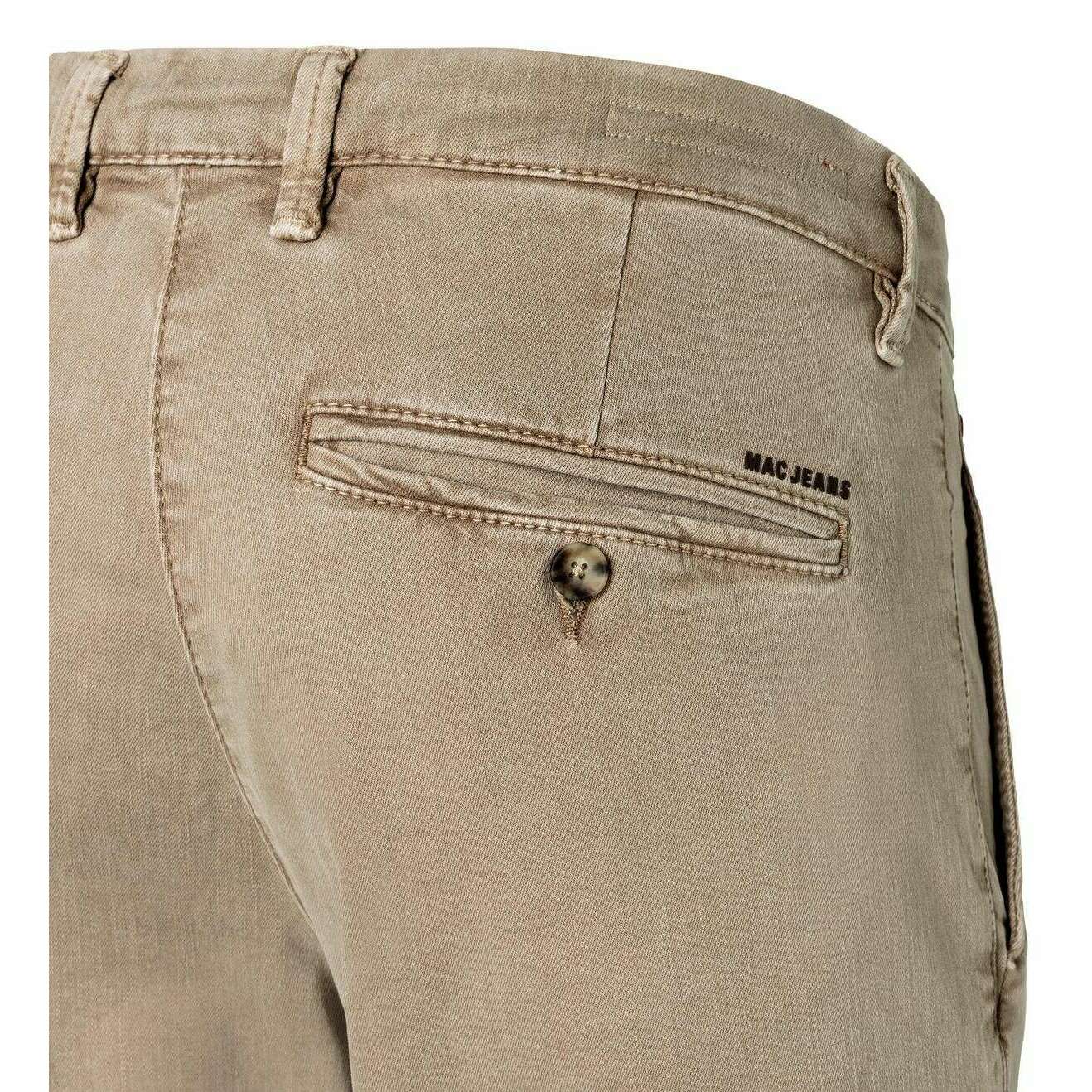 These well made men's ultimate driver pants from MAC Jeans come in a dune beige colour and are manufactured from 89% cotton, 8% polyester and 3% elastane. It is recommended to wash at 40 degrees to keep these trousers in good condition. All the trousers come complete with mac jeans tags. The MAC Jeans Ultimate Driver Pants - Dune Beige are designed with a modern fit that delivers a sleek, contemporary look while keeping comfort at the forefront. The straight, narrow leg creates a refined silhouette suitable for both casual wear and smart styling. Crafted with high elasticity, these pants offer exceptional freedom of movement, while their breathable fabric ensures all?day comfort. Sustainability plays a key role in their construction, incorporating reused cotton and recycled polyester to reduce environmental impact without compromising quality. The result is a versatile, comfortable, and eco?conscious pair of pants that blend modern design with responsible materials.