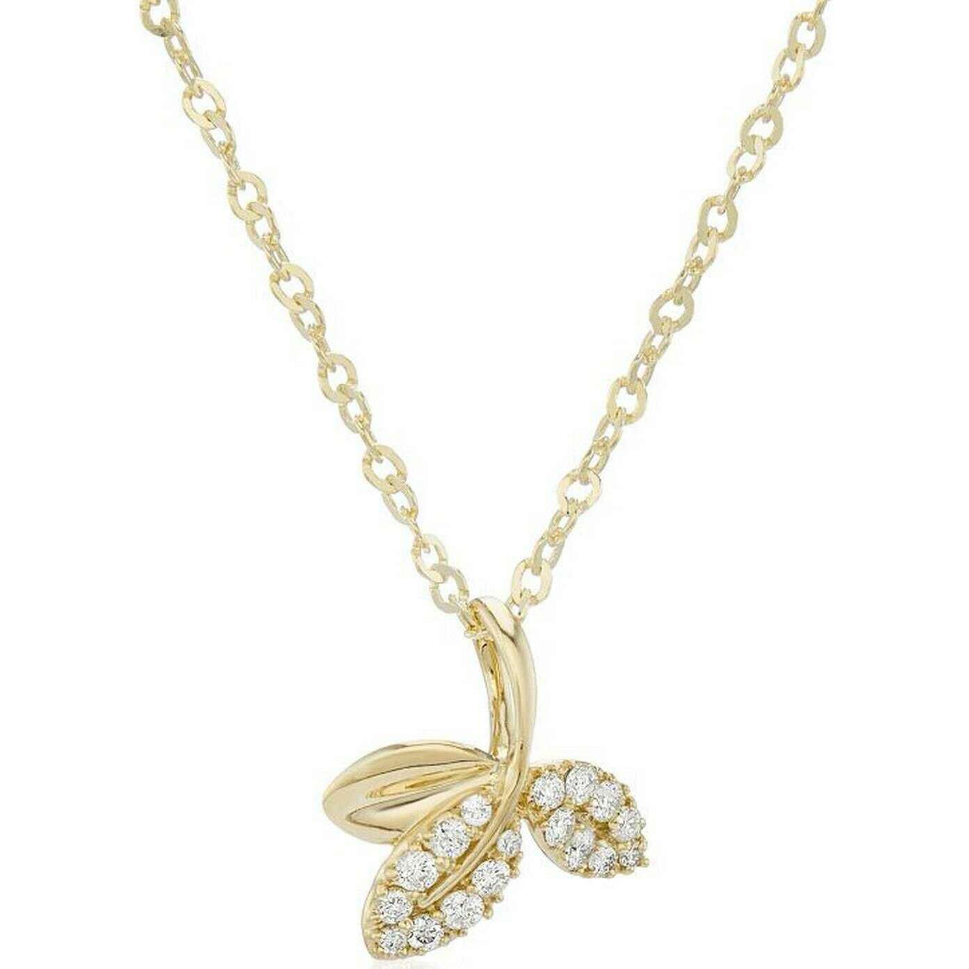 Mark Milton Diamond Leaf Pendant - Yellow Gold/Clear