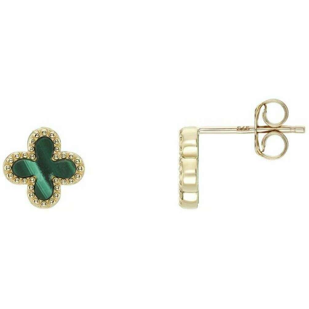 Mark Milton Malachite Flower Stud Earrings - Yellow Gold/Green