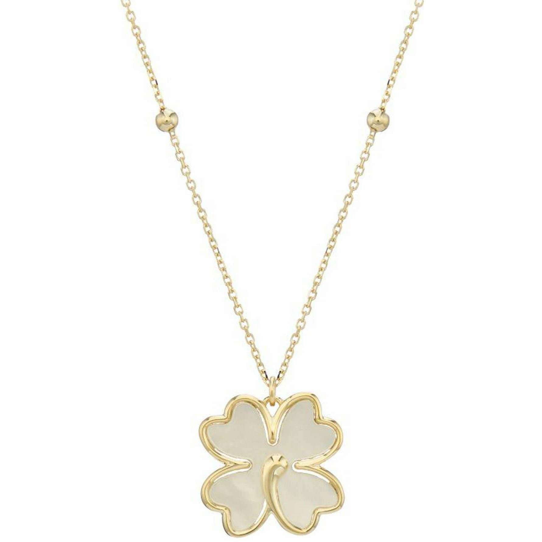 Mark Milton Mother of Pearl Clover Pendant - Yellow Gold/White
