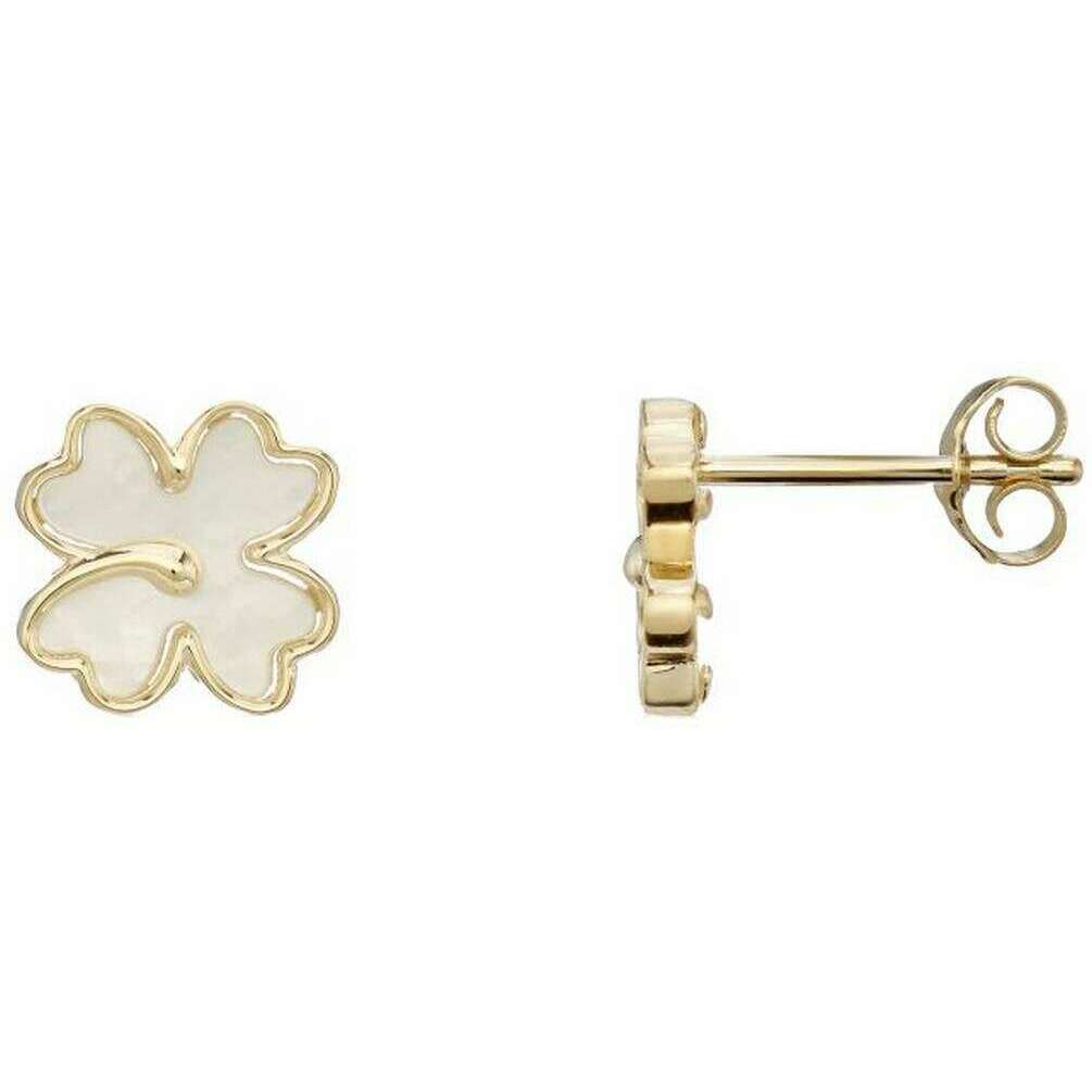 Mark Milton Mother of Pearl Four Leaf Clover Stud earrings - Yellow Gold/White